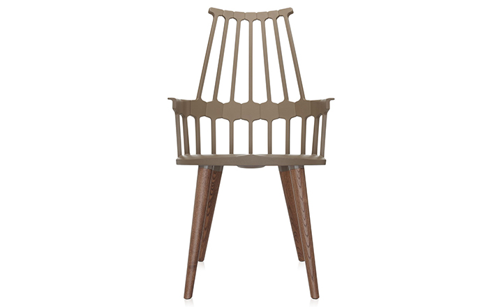 温莎风格椅被冠以乡村风格,但并非一成不变,在不同时期不同阶段又融入新的设计元素。Kartell的这款产品再一次享受重现经典的设计快乐,国际知名家居设计师Patricia Urquiola为温莎椅(Windsor Chair)打造了一个这款新的造型。回归十八世纪英格兰的辉煌时期“梳背”椅的特点,整个框架用亚光材质,靠背的7个分支结构朝着椅腰部位向下延伸,在一个加固六角形圆圈处与纤细的轴汇合,与椅座合为一体。聚碳酸酯材质的使用赋予COMBACK一种轻盈的质感和当代风格。浸透在黑色COMBACK梳背椅里的那一分淡定从容,能让人气定神闲,默默却又不留情面地将浮华虚荣隔在门外。因为不存在彩色光谱里,白色可以说并非真正色彩。纯白色Comback Chair梳背椅,唯美得让人难以抗拒。那种与世无争的清雅,好似刚刚落入凡尘的花瓣,昭示宁静与自然。这款Comback Chair 来自意大利的创新品牌Kartell,以发梳为灵感,回归18世纪英式风格,整齐对称的典雅扮相,表现出一份沉稳内敛的韵韵意涵。木质椅角的运用,让复古气息升华其中。配搭塑料椅身的现代风格特色,不愧为一份跨越历史的新时代作品。荣获2011年Wallpaper设计奖殊荣。
