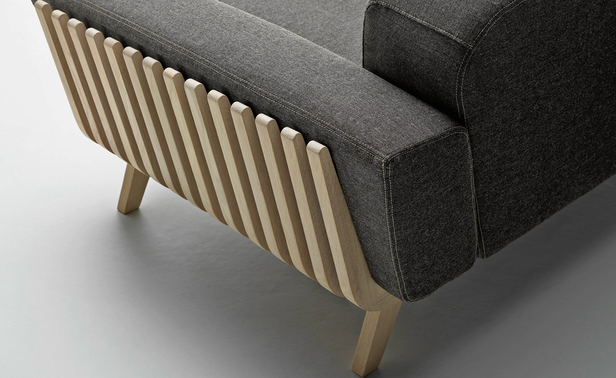 意大利设计师Ezio Riva和Arturo Montanelli推出一款名为Hamper的沙发,这是他们为意大利Passoni Nature公司设计的,产品有两款,分别为:Hamper 1-seater Sofa(Hamper 单座沙发)及Hamper 2-seater Sofa(Hamper 双座沙发)。其主要材质选用了实木作为整个家具产品的主要部分,其设计灵感来源于北欧风格,简约大气。Hamper沙发外部可见的框架由十四根实木板条平行组成,形成了一个类似篮子的形状。整个家具的结构构成有软垫座椅、靠背和扶手,淡灰色调的厚实坐垫极其柔软舒适,天然木质的承压框架散发着大自然的亲切气息,两者搭配和谐,相得益彰。Hamper沙发作为一个极简主义风格的家具设计方案,有着强烈的视觉冲击力。