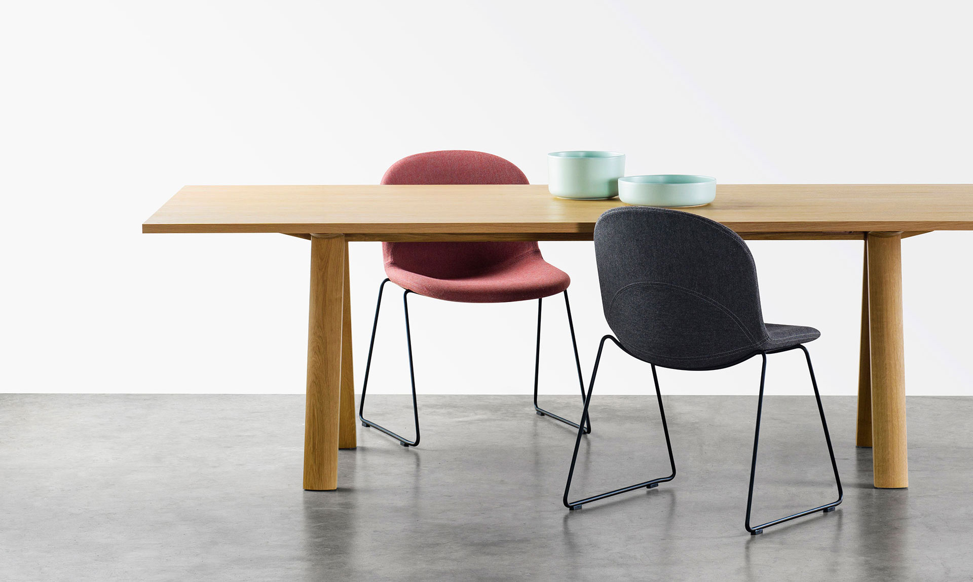 “这个系列的设计重点是创造一个简单但不平凡的椅子,它特别灵活,适合各种空间,从国内到合同”,Marcel Sigel说。楔子的起始点是椅子的构造组成部分的反射:椅子靠背、座椅和腿,在这种情况下,只有一个中央三角形楔形物把它分开并连接起来,它的名字是由一个中央三角形楔子构成的。