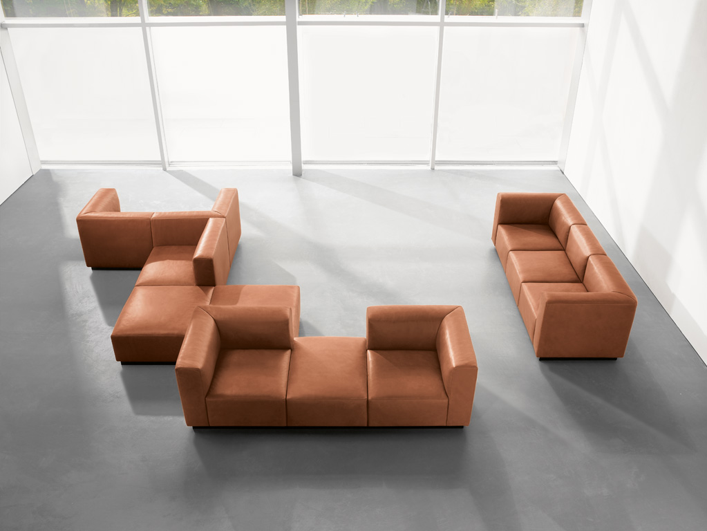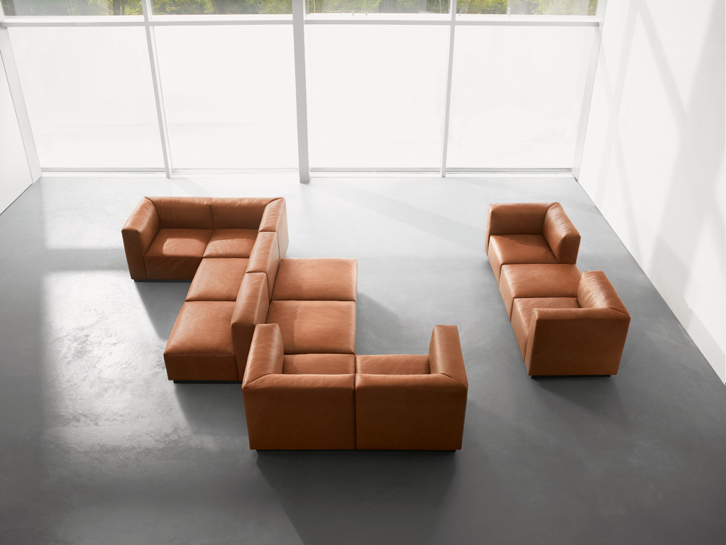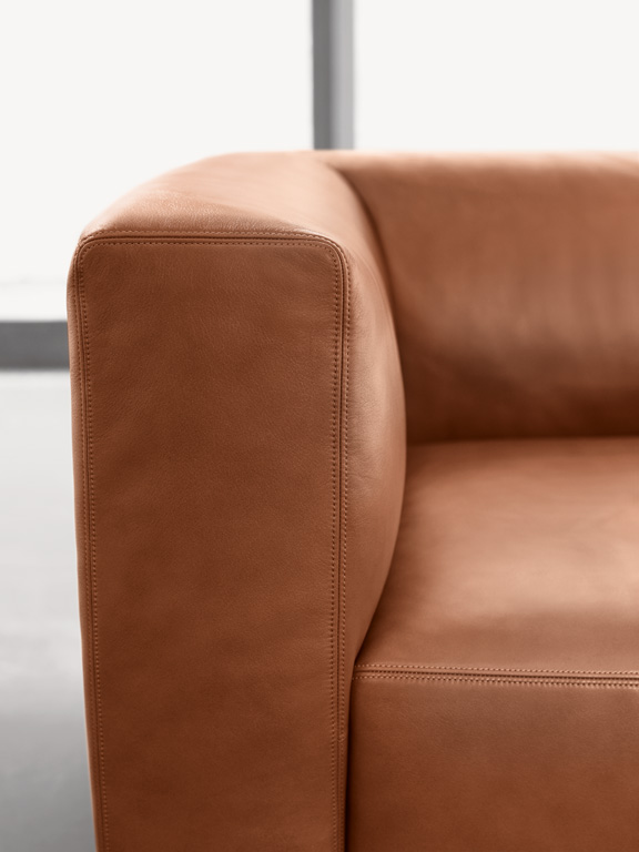 坚固的立方体,同时又很舒适。这款沙发系列将经典的造型、独特的舒适和首屈一指的工艺形成持久的价值观。柔软的内饰结合体积和伸长,用直线和曲线精确的拼接缝绘制轮廓。