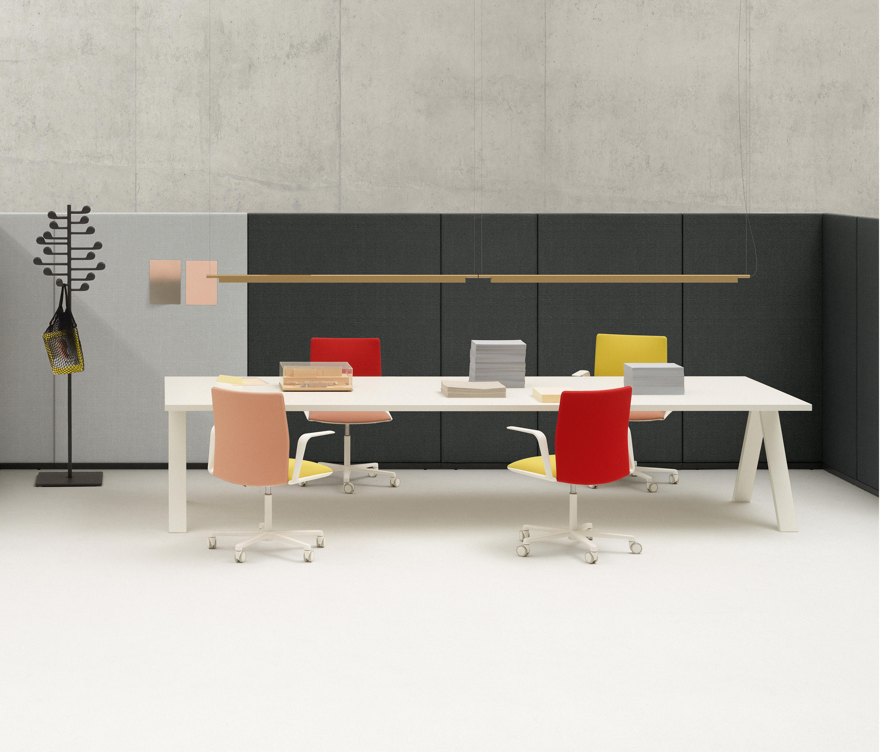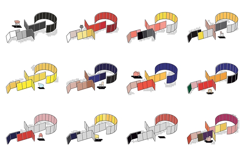 Paravan集合是面板的模块化语言,可以组合起来创建新的表达式来描绘空间。从基本象限到优雅曲率,从线性形式到不规则重复,Paravan将图案,节奏和色彩赋予宽敞的空间。直角或圆角的选项创造了美学多样性,而万花筒材料饰面确保可以定制收集以满足任何空间的需求。 Paravan系列非常适合休息,合作或合约使用,并配有可选的衣架或架子,以增加功能。优雅的线条和图形颜色组合与整个Arper系列集合相匹配,在大空间中实现统一的表达完整性。