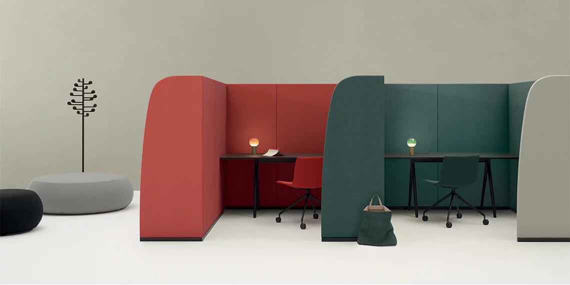 用于定义空间的周长。 Paravan在形式和建筑执行方面具有雕塑感,既清晰又创造空间。像括号一样可以围绕对话,Paravan在开放区域创造亲密感,并采用吸音面板来支持焦点,注意力和协作。