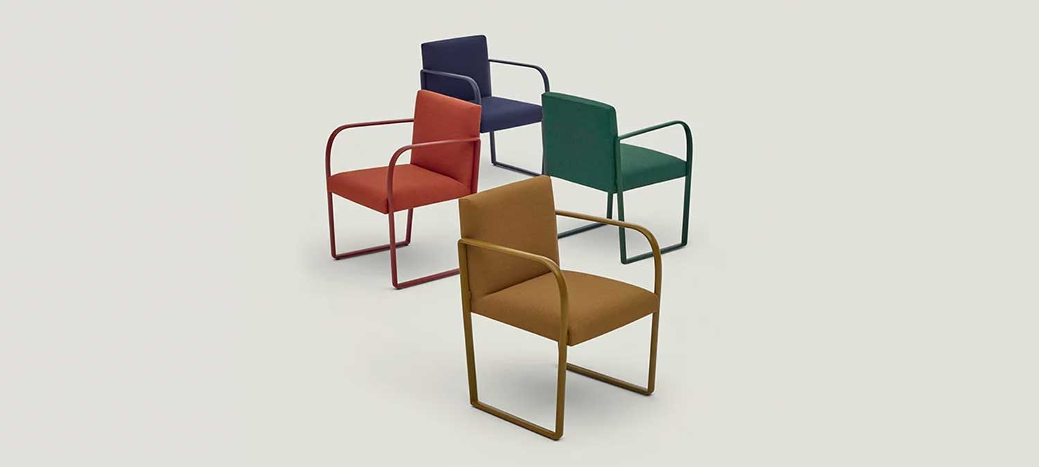 Arcos系列在形式和背景上都反映了其经典的灵感来源。该系列以公共空间为设计理念,配有椅子,休闲椅和沙发,全部配有扶手,可容纳休息室,餐厅和候诊室。 Arcos旨在与Steeve,Parentesit和Cross对话,为休息,放松和社交创造舒适的环境。特别注重颜色定制,可以在室内装潢和哑光金属中创造出天鹅绒般的墨色调单色,表达低调的表达。