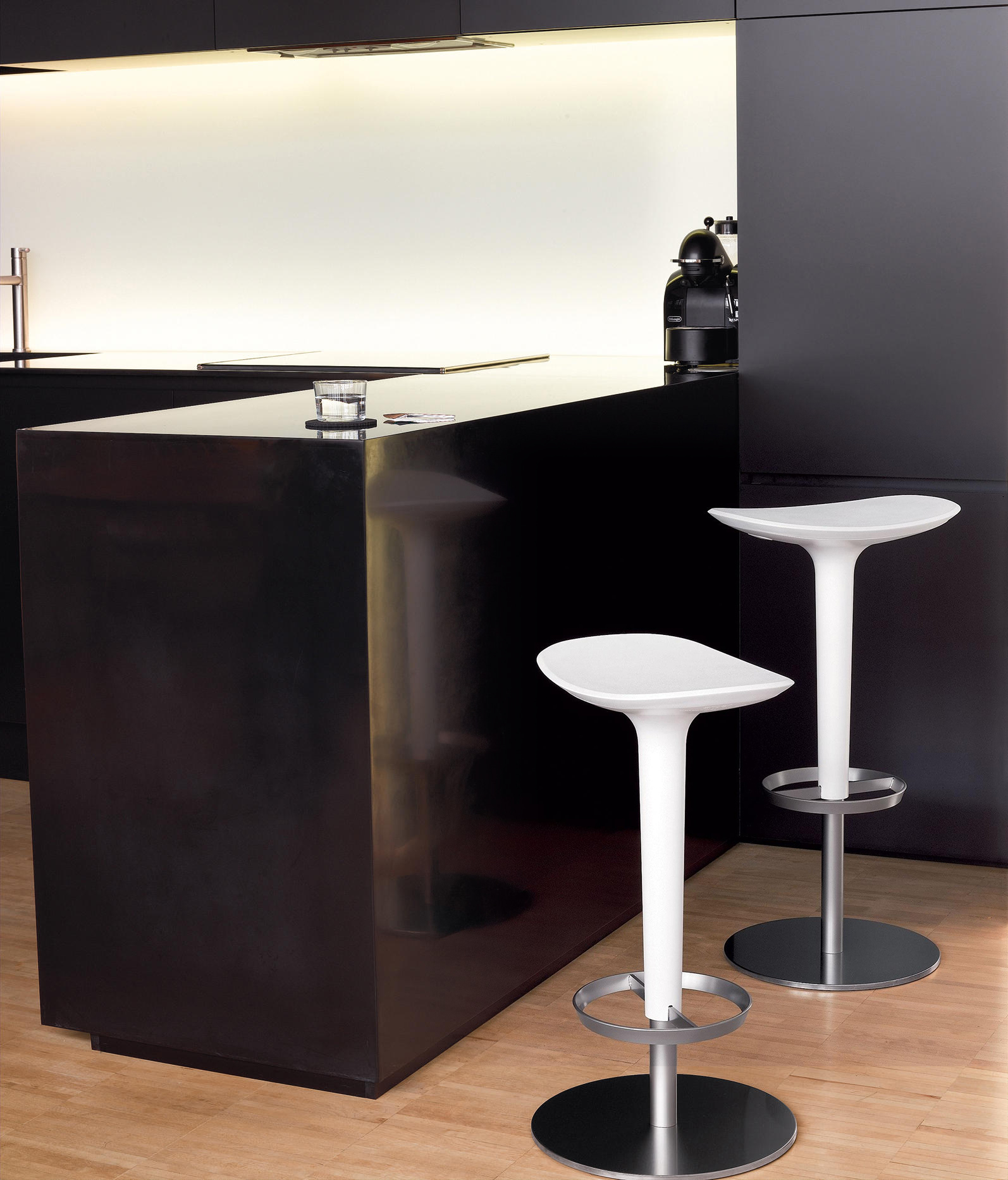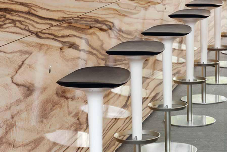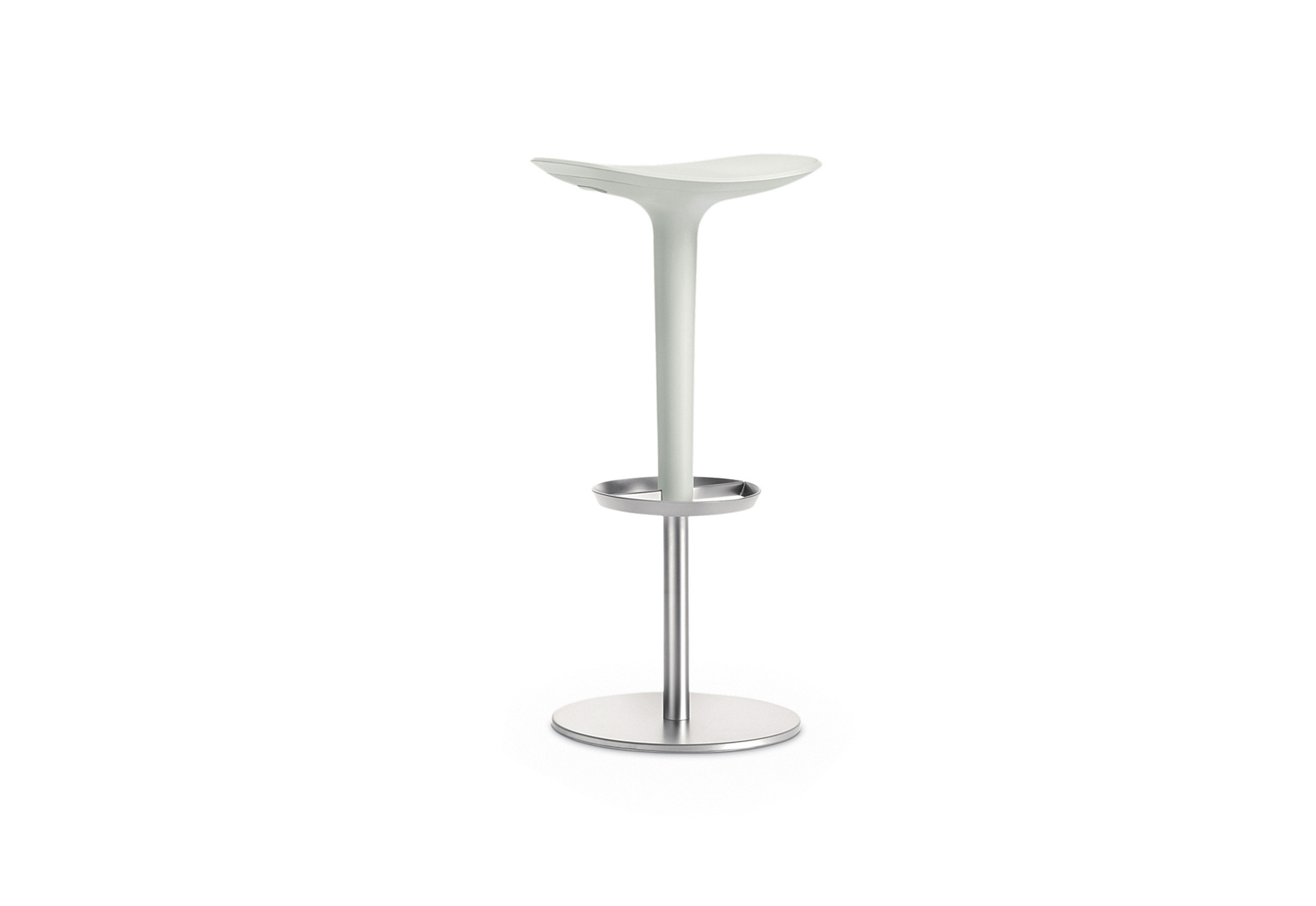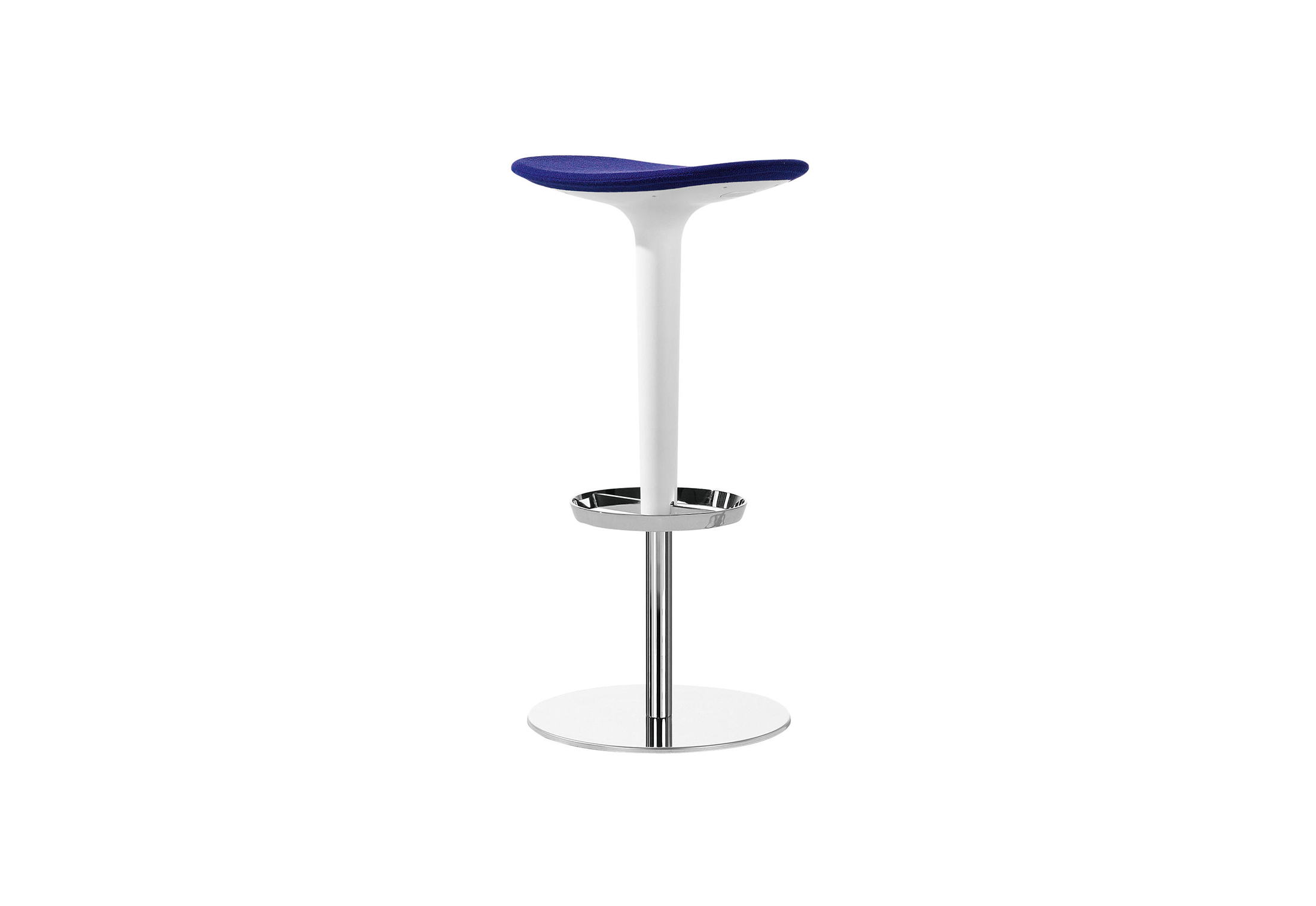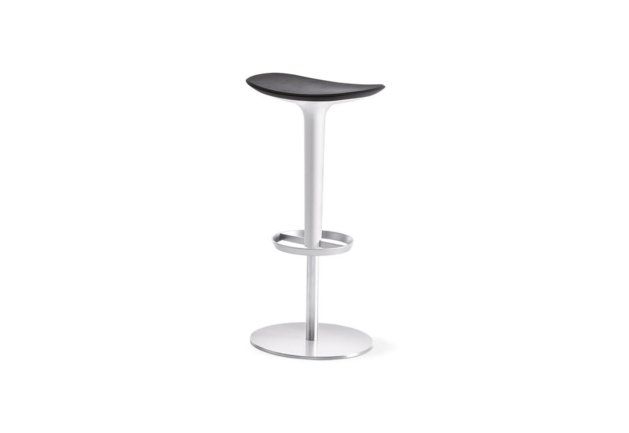 Babar凳子采用符合人体工程学的聚氨酯座椅制成,有多种颜色和双色组合。 软垫版本,座椅覆盖面料,皮革,人造皮革或客户自己的面料,配有靠背。 底座采用不锈钢制成,带有拉丝或镀铬表面,有固定,地板固定和可定制高度(65至77厘米)或高度可调的版本