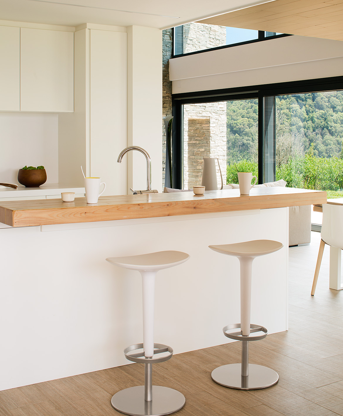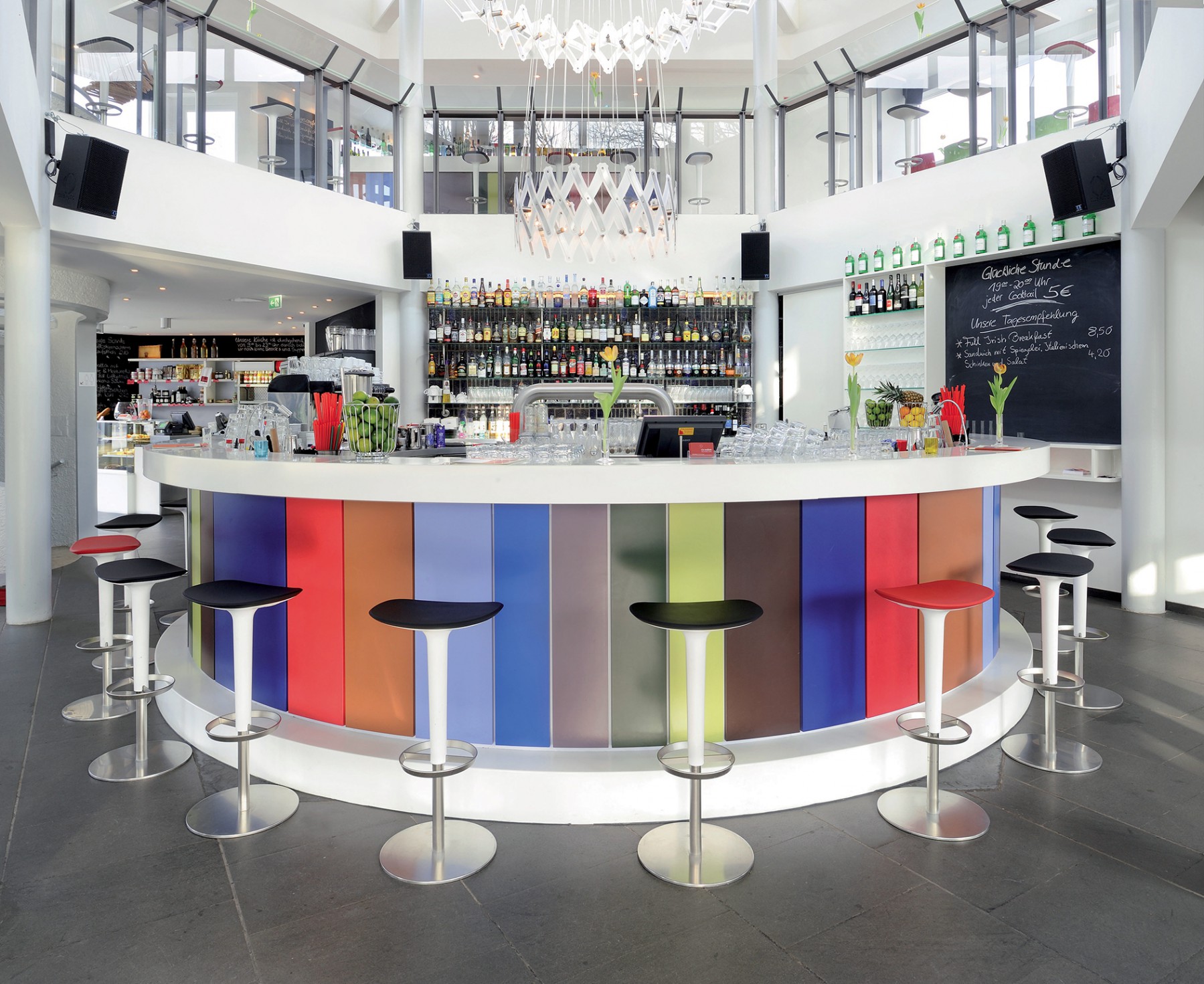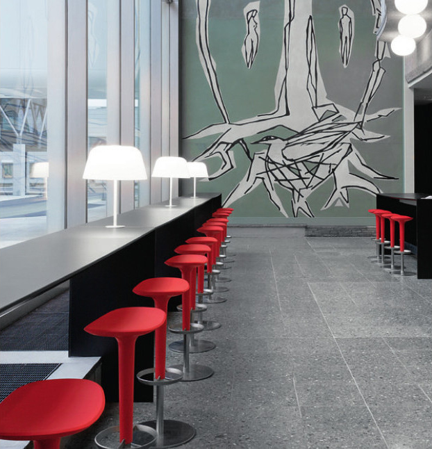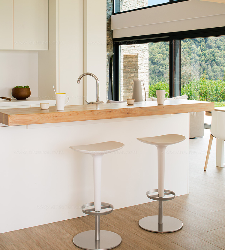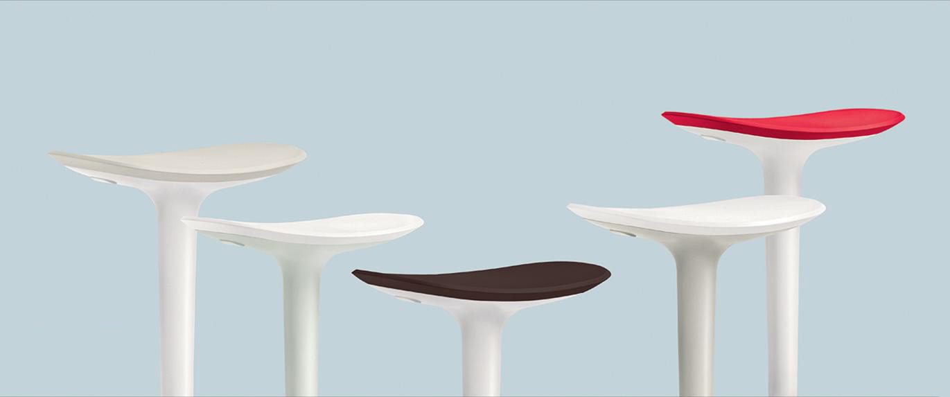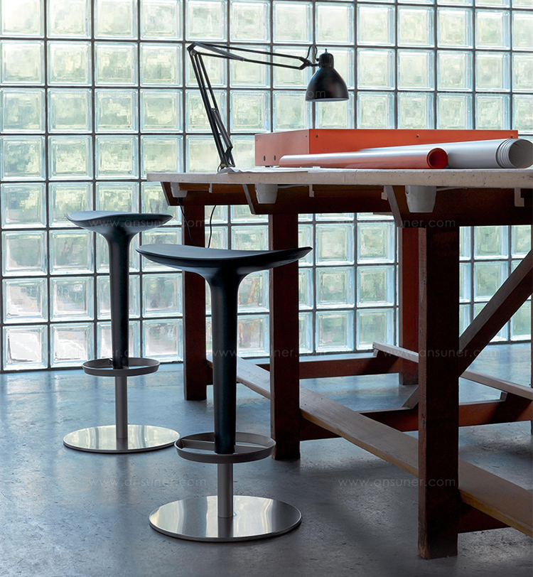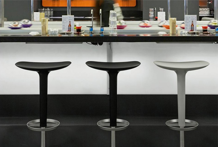 Babar凳子采用符合人体工程学的聚氨酯座椅制成,有多种颜色和双色组合。 软垫版本,座椅覆盖面料,皮革,人造皮革或客户自己的面料,配有靠背。 底座采用不锈钢制成,带有拉丝或镀铬表面,有固定,地板固定和可定制高度(65至77厘米)或高度可调的版本