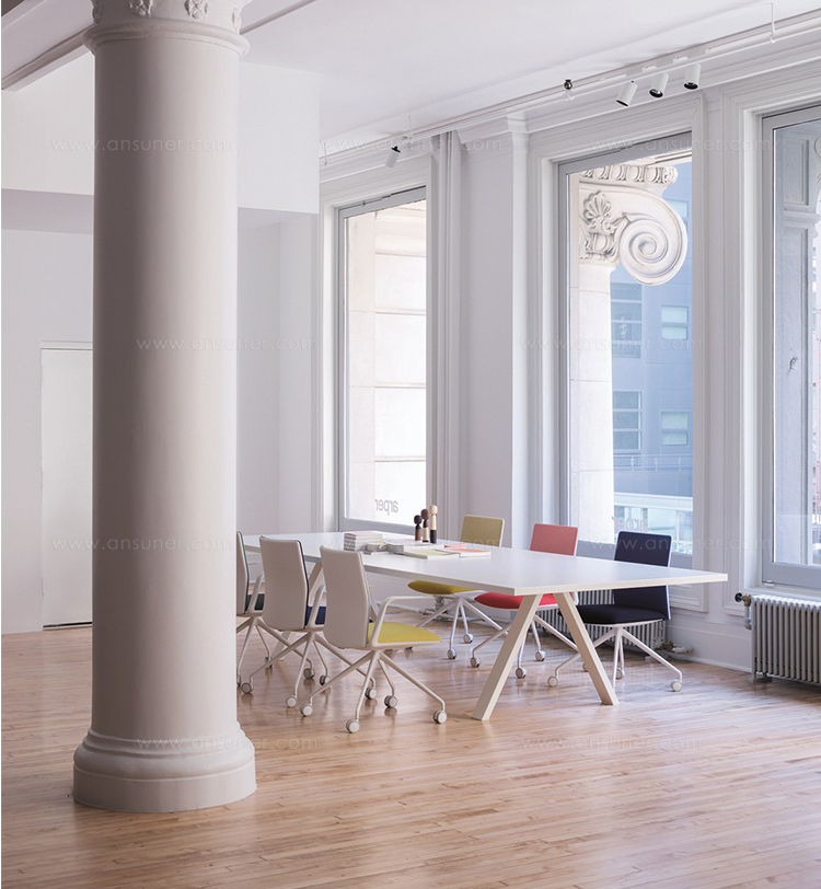 Cross Table适应性强,开放式和大方,同样适用于会议室,住宅空间或协作工作环境。 由于可选的配置安排,它可以作为集体聚会的临时会场或具有足够空间分享的公共工作站。 桌子的长度很大,既有最小的也有建筑的,具有坚固的结构和充足的空间。 中央插座允许计算机插入,以满足动态,现代办公室的不断变化的需求。 Cross提供灵活,支持的工作空间,时尚,完美的风格。