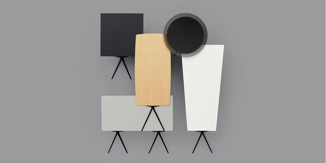 Meety系统可广泛定制,具有桌面形状选项,以及从层压MDF到FENIXNTM®,从木材到玻璃的各种材料。圆形(直径120厘米),正方形(120X120厘米)和矩形形状(从70X140厘米开始)被设想用于大型座椅环境,而柔软和流动的肥皂形状具有独特的存在感和吸引力。创建梯形桌面形状是为了响应协作工作环境,并且可以组合成不同的配置以在工作场所创建私人空间或开放性。