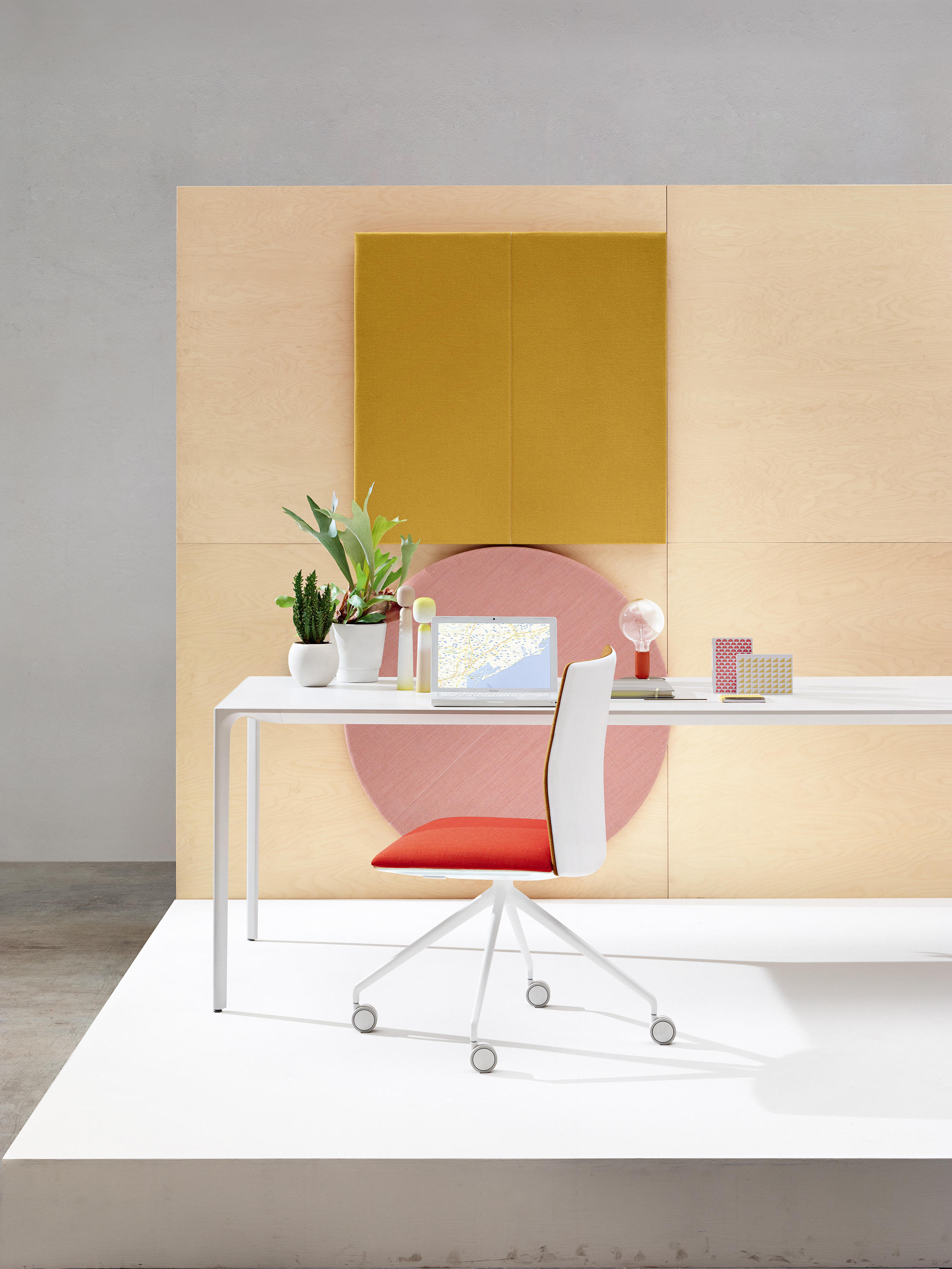 Pengelly工作室干净时尚的设计美学产生了Nuur,这是一种四脚桌系统,进一步加强了Arper在这一领域的地位。 完全白色的极简主义设置,木质贴面顶部,或红色,更醒目的风格:Nuur可以通过组合顶部的不同翅片和铝结构的一系列颜色来定制。