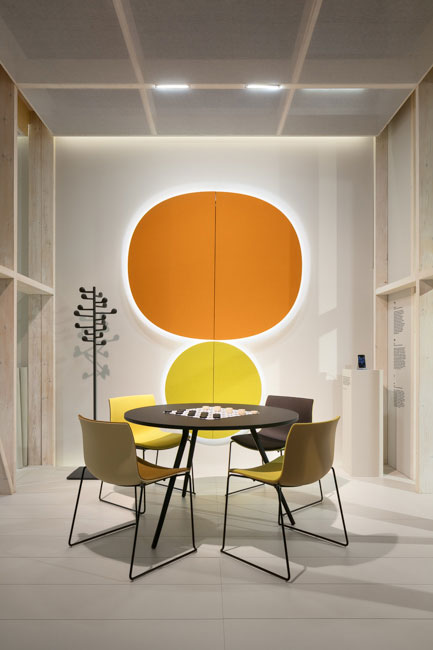 Parentesit是一个装饰模块墙板的集合,为当代共享空间提供舒适。粗体的图形形式有三种形状——圆形、正方形或椭圆形——可以通过添加扬声器或环境光进一步定制,以创建既实用又现代的视觉元素。该系列现在由独立版本补充,这是一个模块化的独立系统,用于在共享的工作空间或协作环境中进行集中注意力或安静对话。