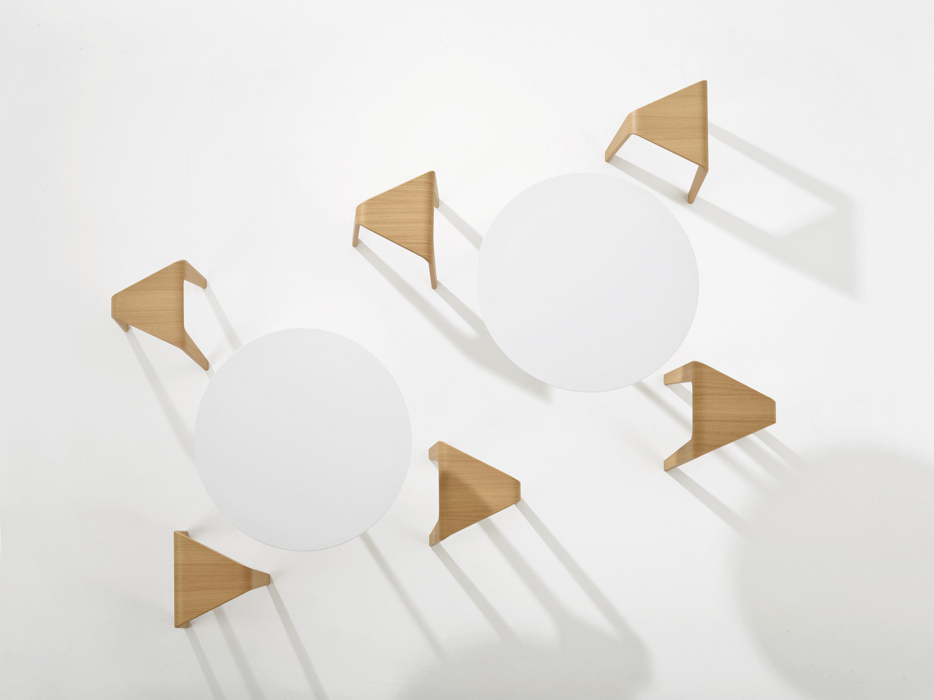 Ply采用三角形和模块化设计,是一种低矮的桌子和凳子系统,采用流畅的木线条。 其设计旨在创造从顶部到腿部的连续线条,其减少的轮廓和温暖的材料与其动态形状相得益彰。 单独或成组,Ply的俏皮几何表面就像七巧板的游戏,形状和颜色共同创造开放的构图。