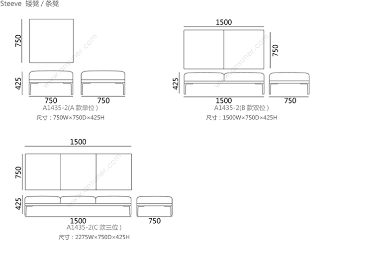 Steeve 矮凳/条凳 系列尺寸/示意图