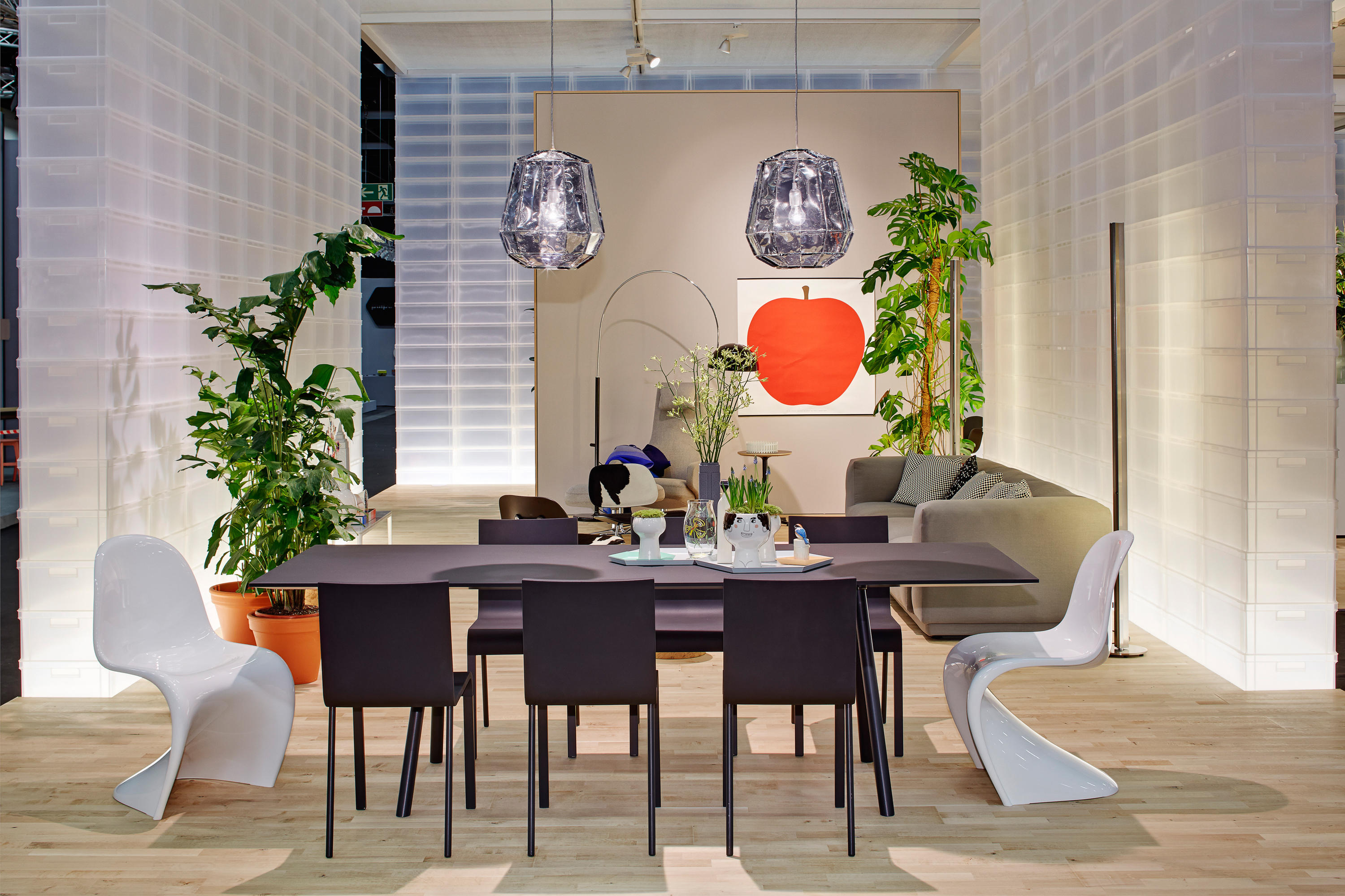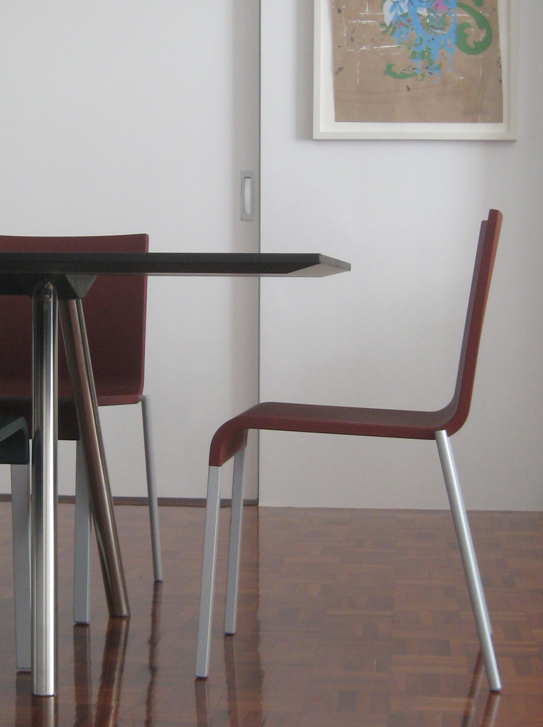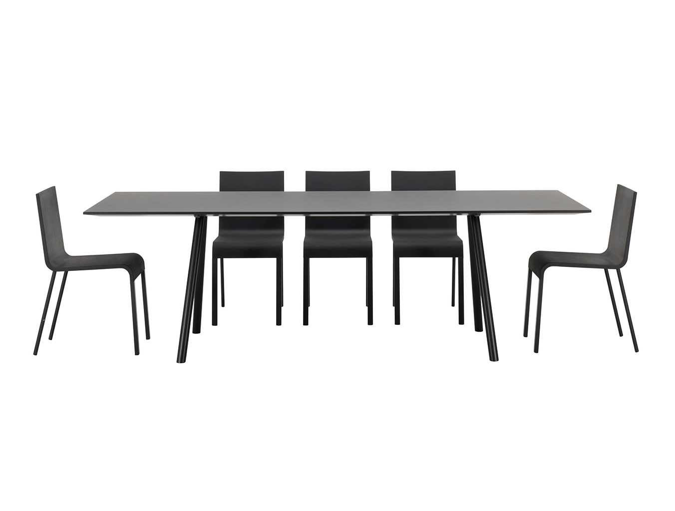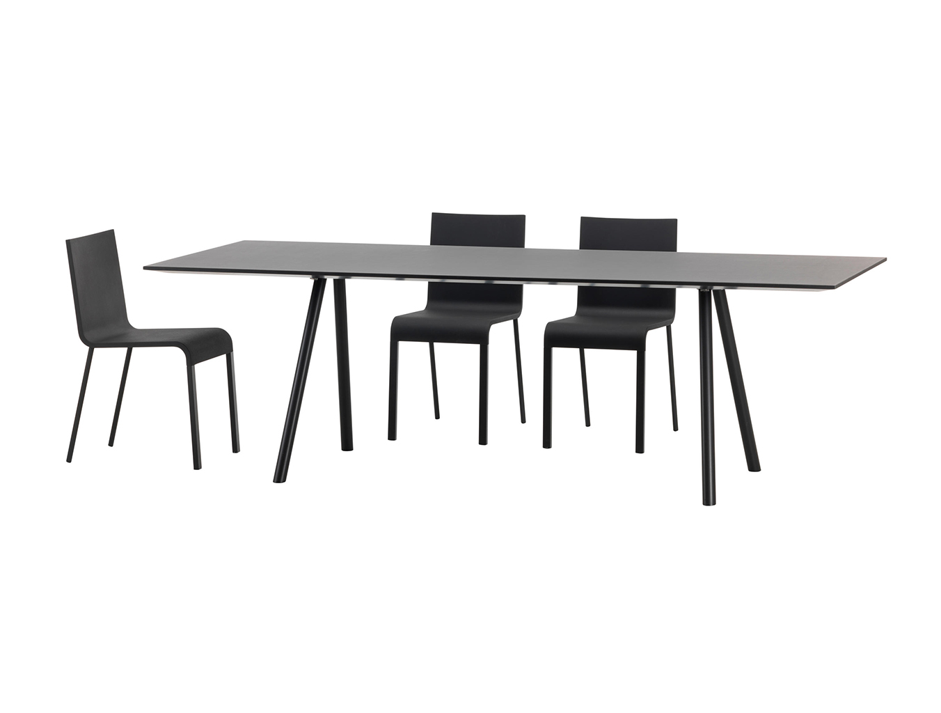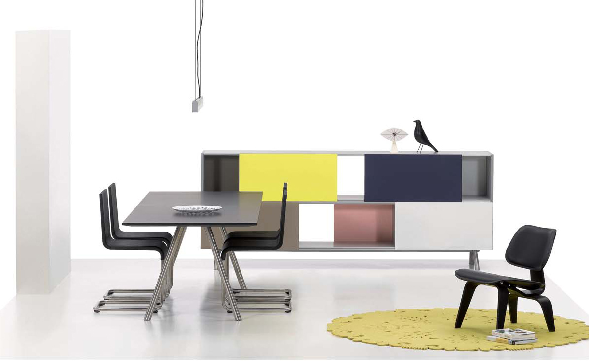 像A-Table这样的纯粹设计使Maarten Van Severen成名:具有象征美感和精心平衡比例的产品成为他的标志。 桌面采用油毡表面,这是一种天然且耐磨的材料,营造出整体效果。 黑色桌腿突出了这种外观。
