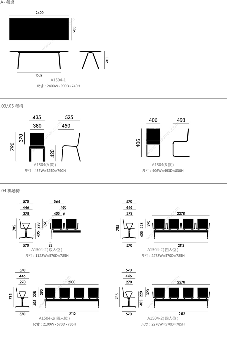 A-餐桌 系列尺寸/示意图