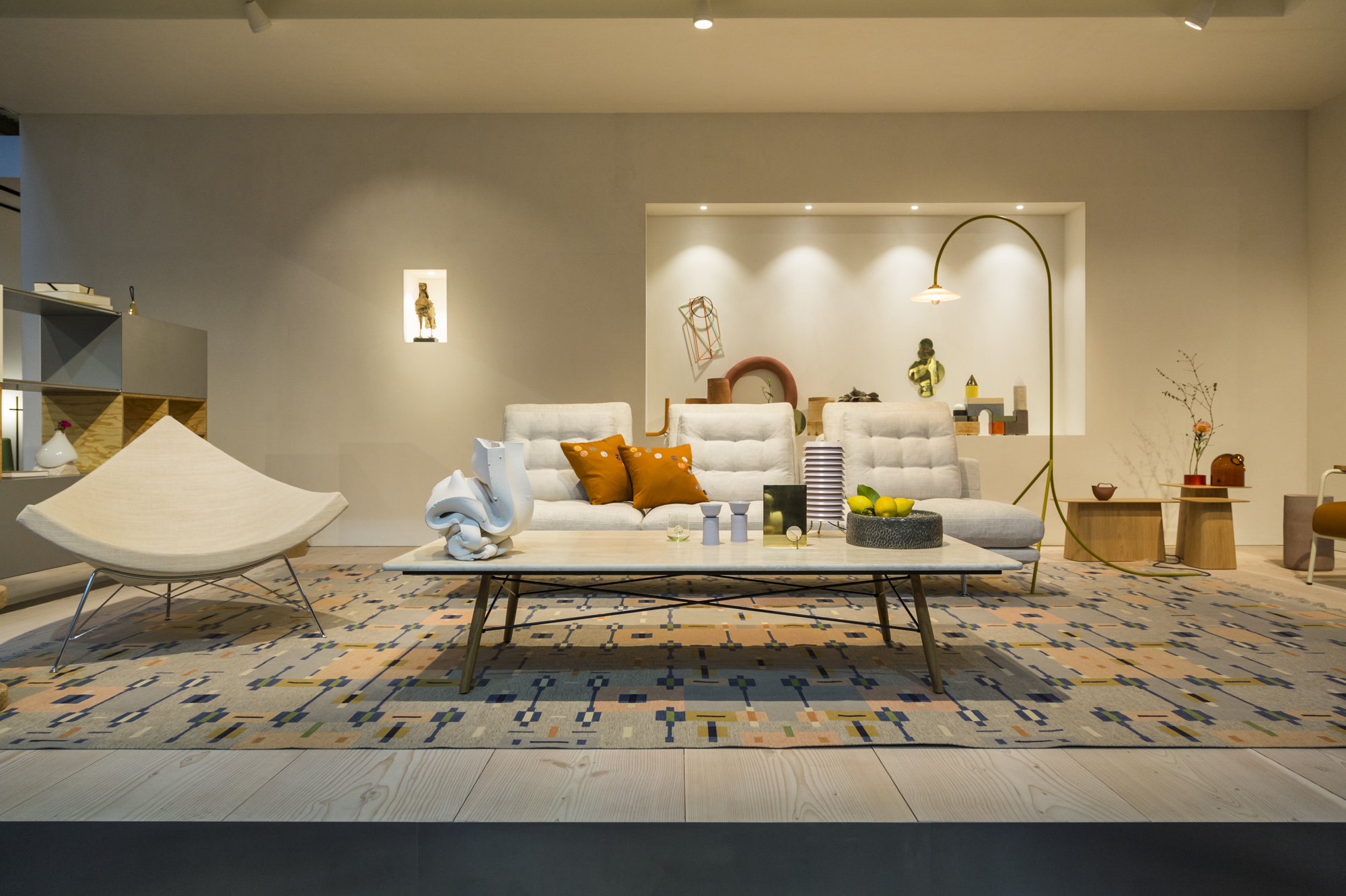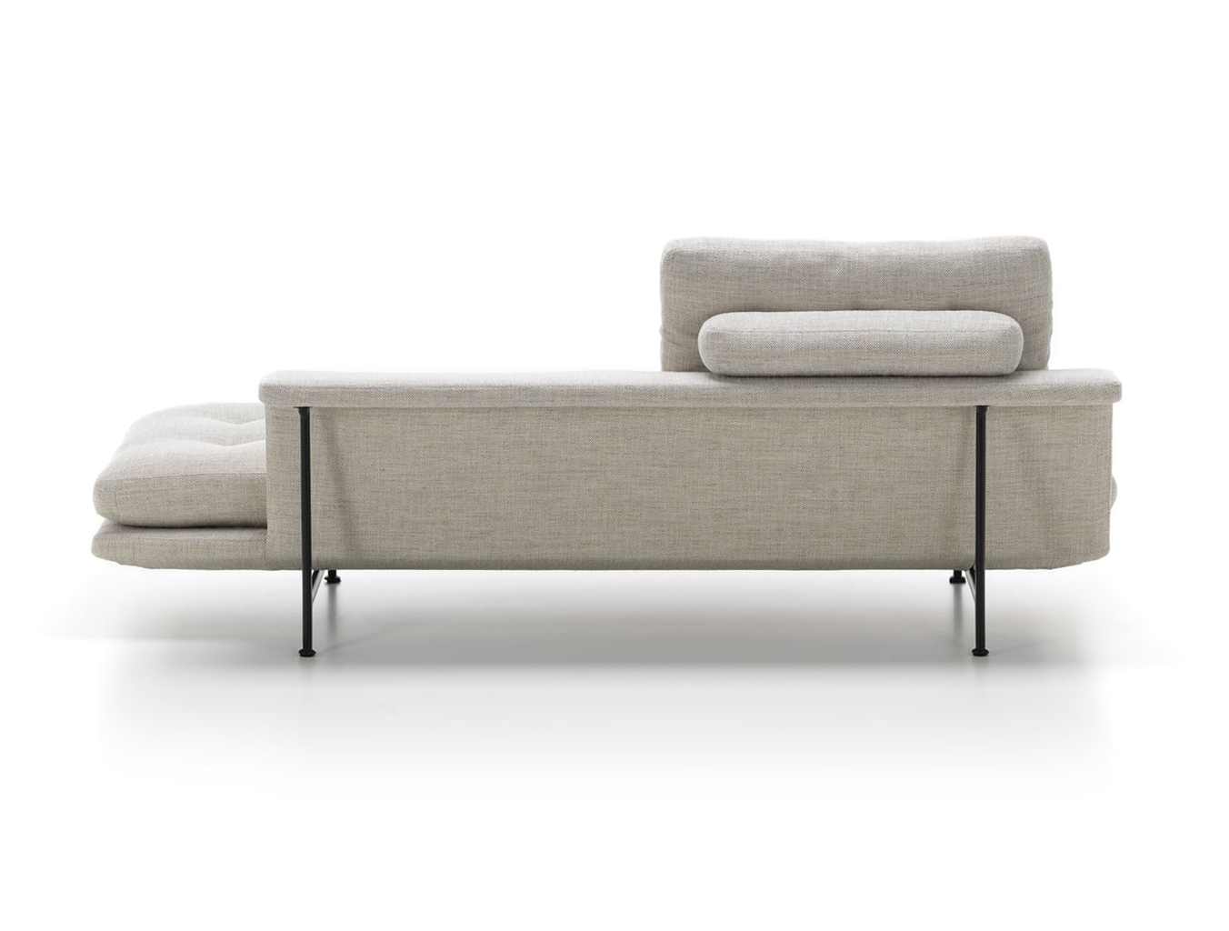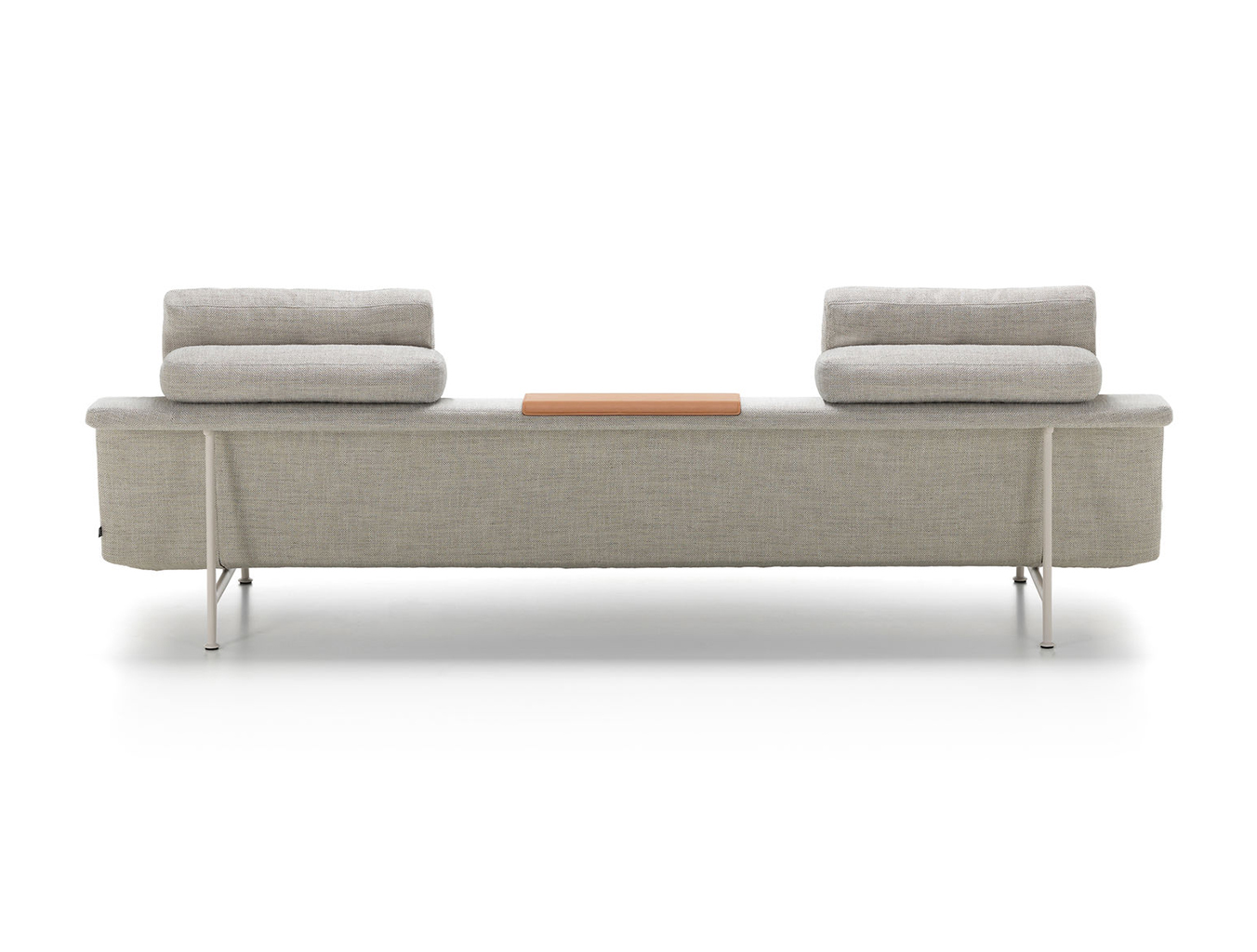 宽大的线条和几何形状的宽大沙发元素营造出宽敞的坐姿或斜倚平台。尽管比例广泛,Grand Sofa仍然拥有优雅的轮廓:纤细的织物覆盖的身体呈双重角度,形成一个层叠式座椅,靠背和后部壁架。车身在座椅表面的每个端部下方的两个点处以及靠背后面由桥状铝基座框架支撑,使得沙发看起来漂浮在地板上方。座椅元素两侧开放,强调GrandSofà的水平面。消费者可以选择全长靠背或缩短版本。这使得可以生产具有间隙和视点的大型座椅布置 - 具有几乎地形特征的沙发景观,传达轻盈和可变性的表达。