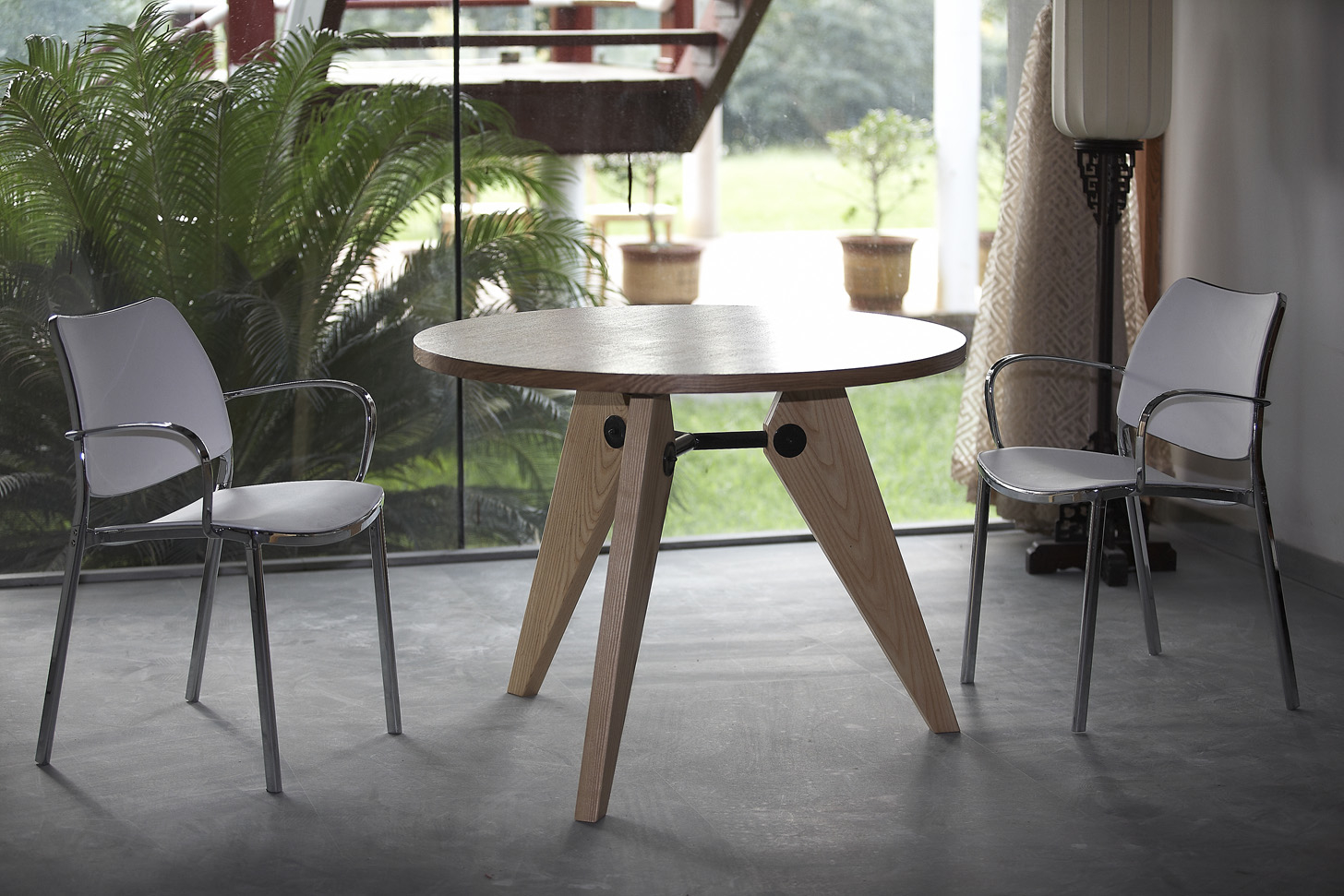 法国设计师兼工程师JeanProuvé于1949年为巴黎大学创建了圆形木制Guéridon桌子。它有两种不同尺寸和各种类型的优质木材。