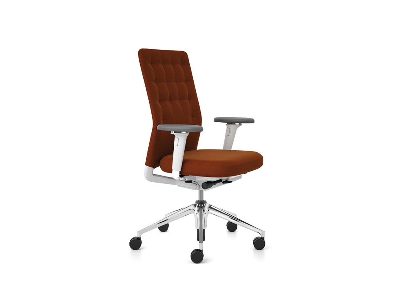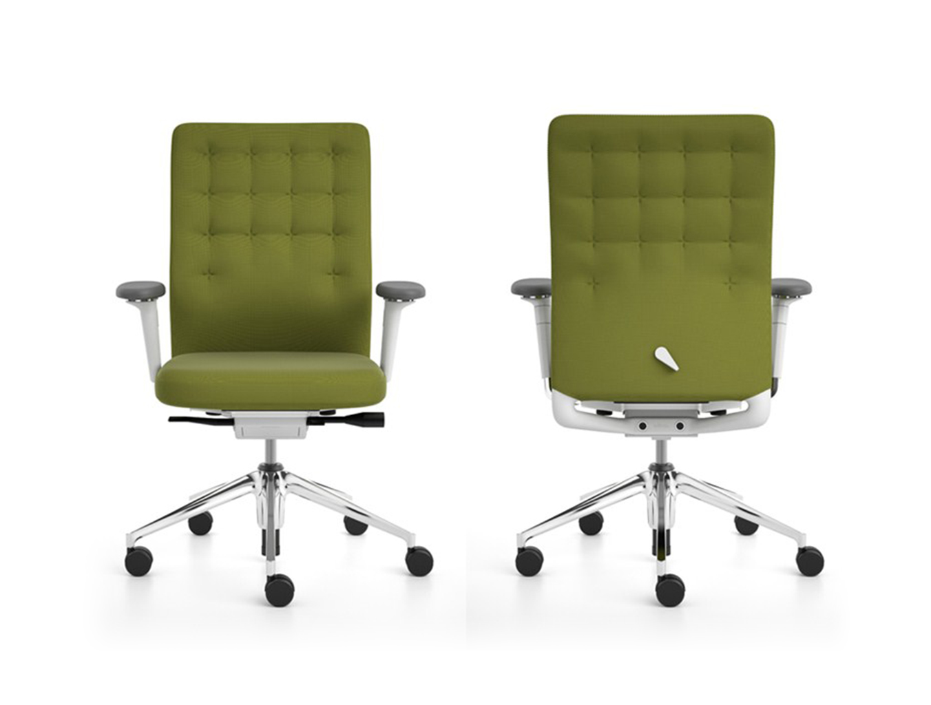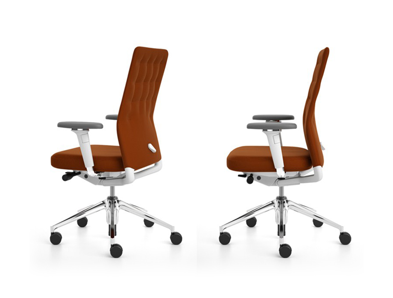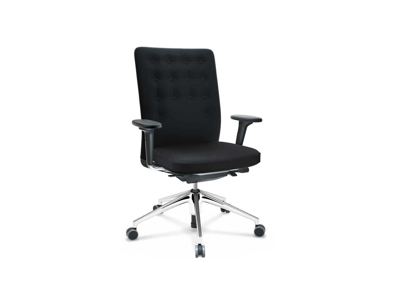 凭借其紧凑的衬垫,ID Trim办公椅的靠背传达出经典优雅和高品质工艺的感觉。 带有一体式腰部支撑的夹层结构提供了舒适的软垫靠背,同时几乎与网状靠背一样纤薄 - 为办公椅靠背提供了这两种结构类型的替代方案。