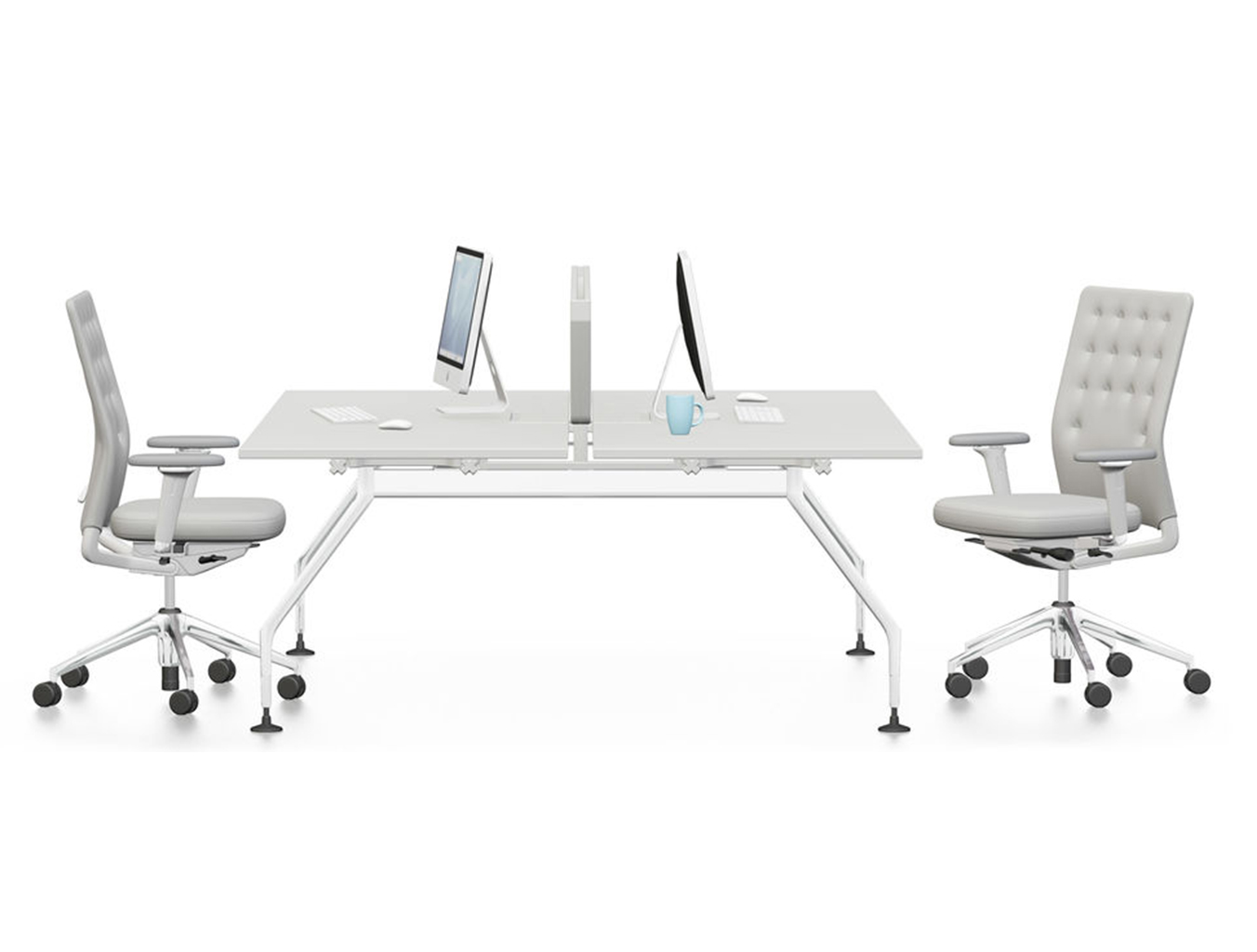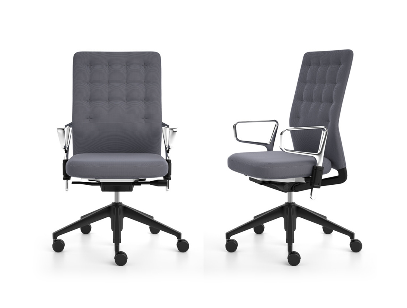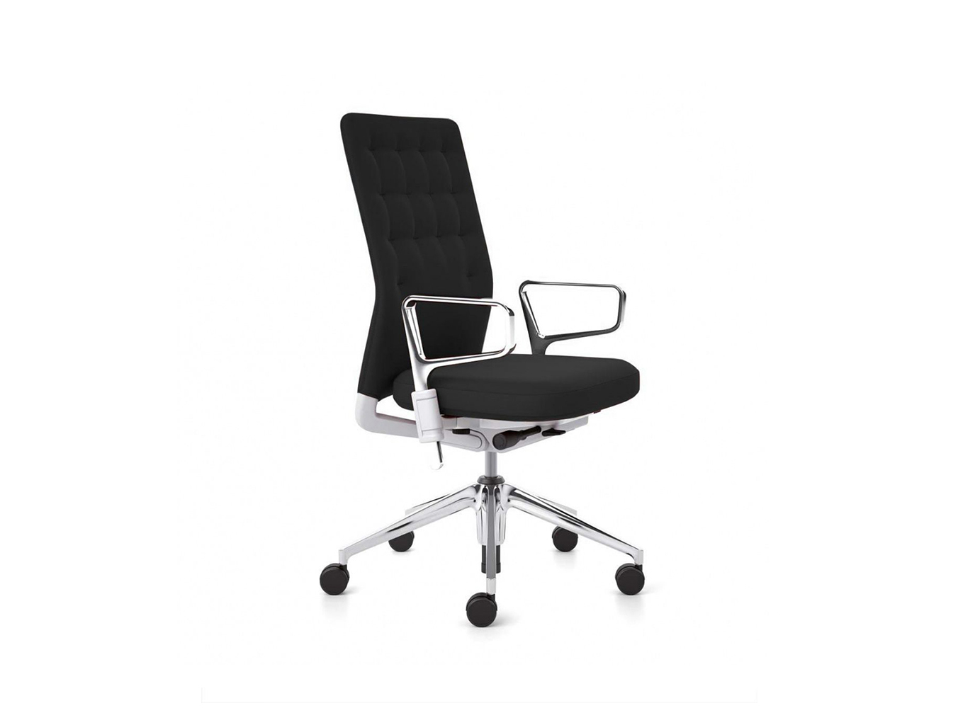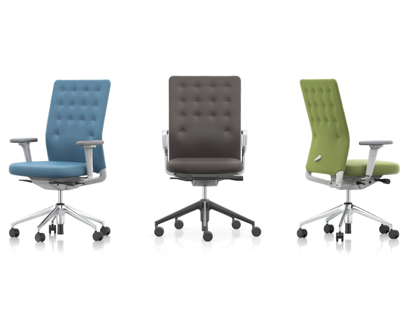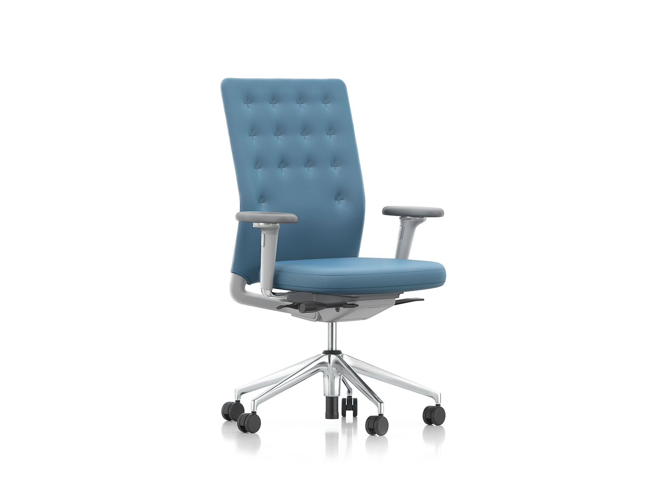 凭借其紧凑的衬垫,ID Trim办公椅的靠背传达出经典优雅和高品质工艺的感觉。 带有一体式腰部支撑的夹层结构提供了舒适的软垫靠背,同时几乎与网状靠背一样纤薄 - 为办公椅靠背提供了这两种结构类型的替代方案。