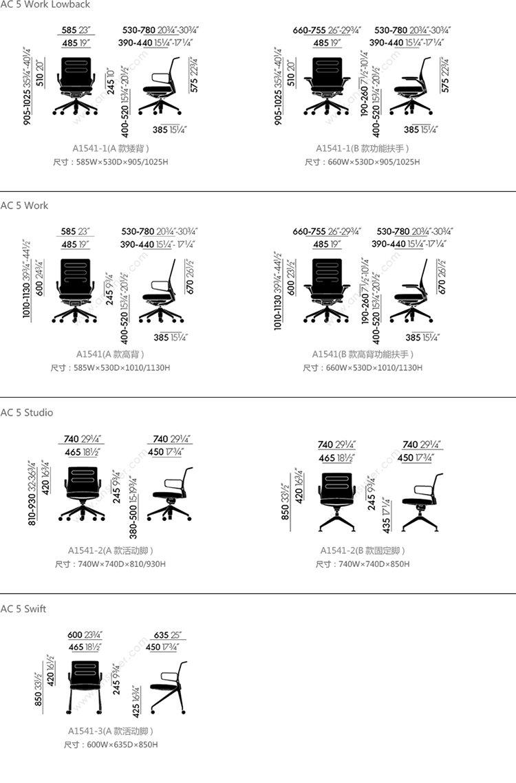 AC 5 Work Lowback 系列尺寸/示意图