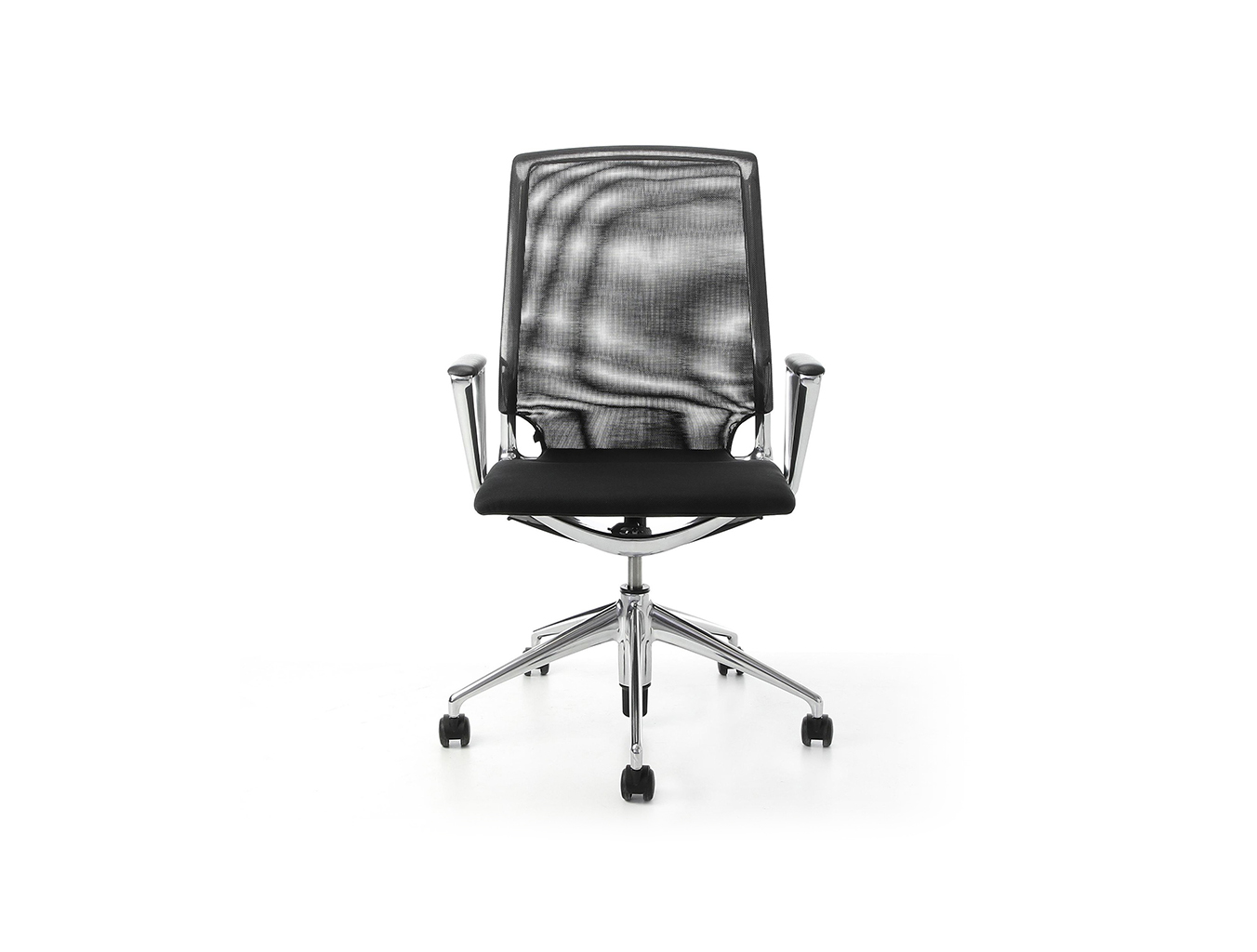 Meda Chair代表舒适,技术和美学的最佳组合。 其同步运动及其倾斜和可锁定靠背与座椅衬垫和优雅的装饰元素相结合,为用户提供卓越的舒适感。 座椅的装饰有皮革或织物可供选择,而靠背则可选择皮革或网眼织物。