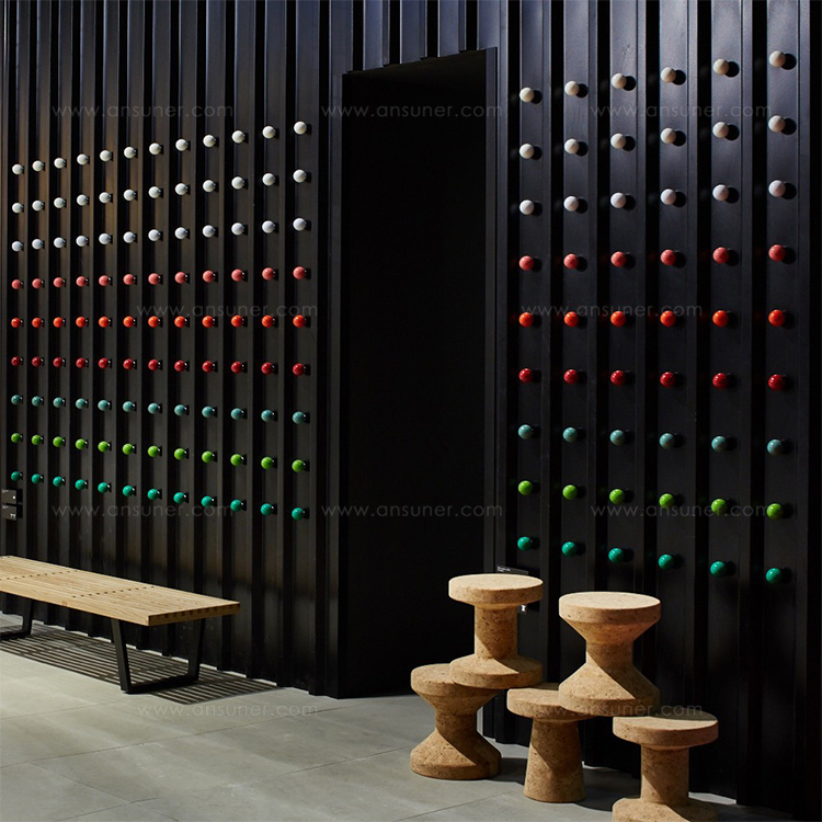 Hella Jongerius的Coat Dots安装在一个可伸缩的销钉上,可以稍微拉离墙壁,为夹克和衣架提供方便的挂钩。 同时,它们也可以简单地用作装饰墙元件。 涂层点有三种颜色协调的球,包括安装材料。
