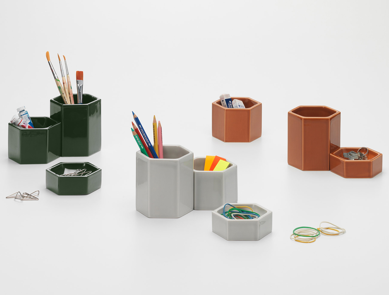 英国设计师Jasper Morrison与Vitra合作了30年。 在这漫长而富有成效的时期,除了他众所周知的家具设计外,他还创作了许多小装饰品。 莫里森现在已经将他对比例和材料的正确本能应用于六角形容器的创造 - 六角形紧凑型通用容器,可以以有吸引力的组合排列。 坚固的陶瓷材料的重量提供了良好的稳定性,而其精细,凉爽的表面具有强大的触觉吸引力。