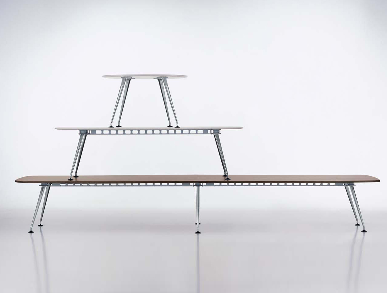MedaMorph是与Alberto Meda合作开发的,其工程背景在这个着名的会议桌系统的形式和功能中很明显。 简单而精致的底座由星形连接器,可变长度的型材和两种类型的支腿组成,提供模块化选项的构造套件。 除了可配置的访客,会议和会议桌之外,MedaMorph Collection还可以创建任何大小和形状的表格分组。