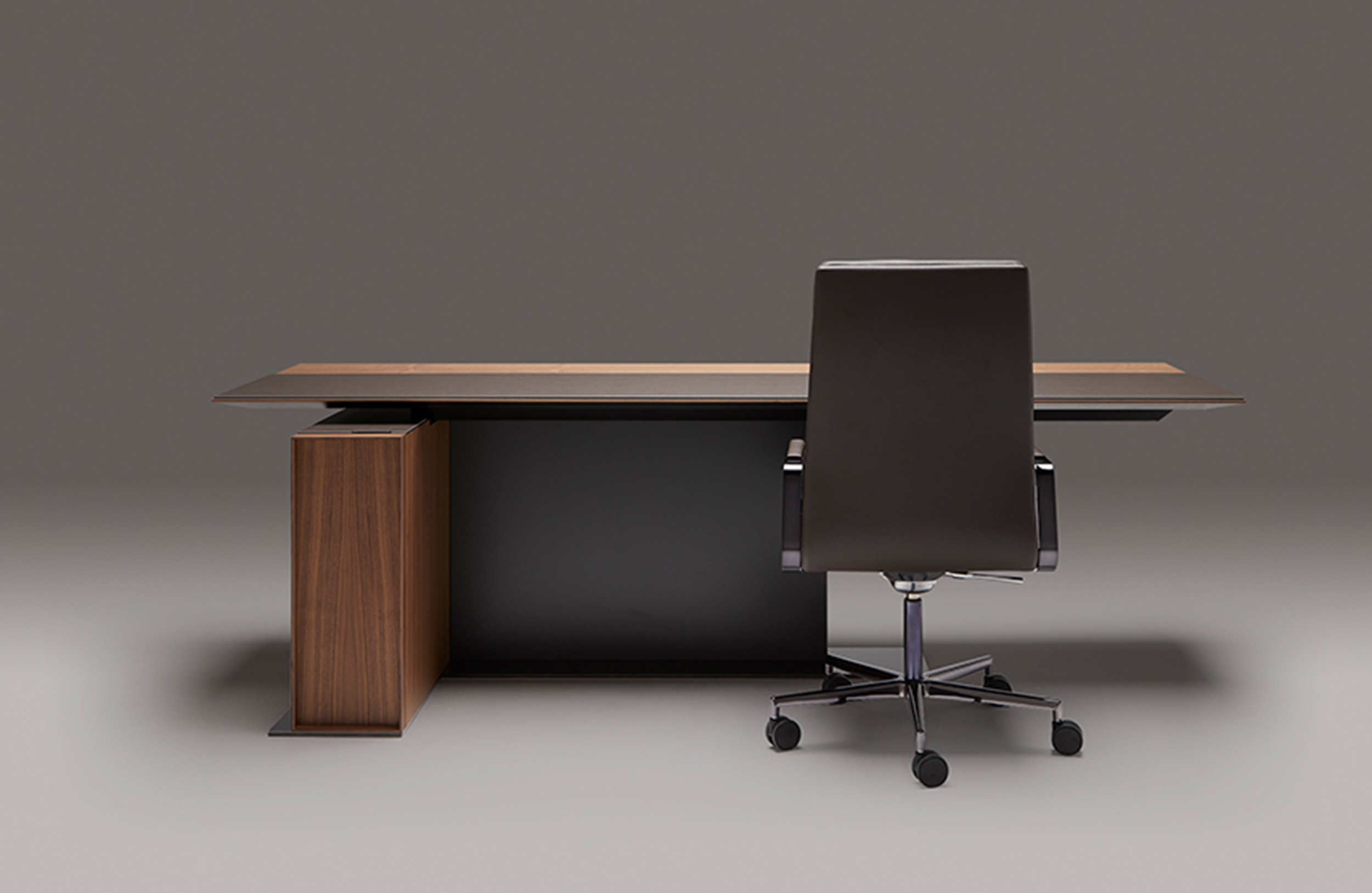LA MESA行政办公桌采用珍贵的中长木制前面板,融合了经典和通风的外形。