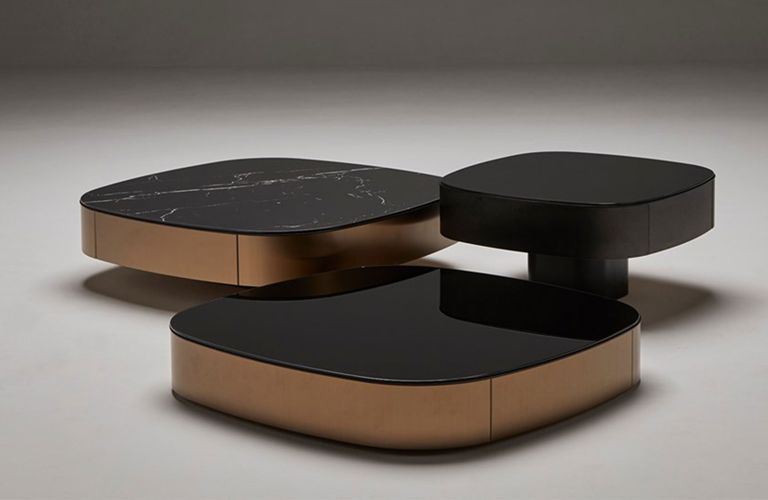 该系列将非凡材料结合在一个既不是圆形也不是方形的辅助桌子中; 它们的一面有些拉长或略有侧面,但它们仍然非常雄伟。克莱斯勒系列有大理石台面,漆面玻璃,木材,皮革和其他材料; 所有都通过迷人的金属饰边增强。附加的不锈钢周边有以下色度范围:青铜色,锡色或黑色。