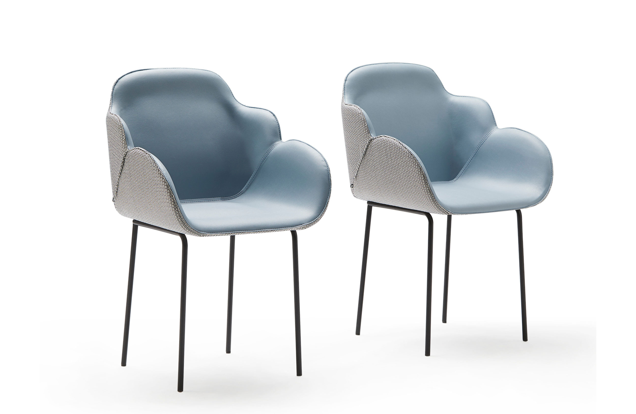 扶手椅的特点是其大胆的美学座椅和最小的结构之间的对比。当代建筑形式几乎处于平衡状态,一旦你坐在上面就会给人一种符合人体工程学的感觉。两个软垫外壳总是优雅地完成了可见的缝合,定义了物体体积和边缘。内部皮革与外部织物之间的对比使得座椅拥抱并且非常舒适,提供适合任何空间(如合同或家居)的组合和饰面的无限可能性。