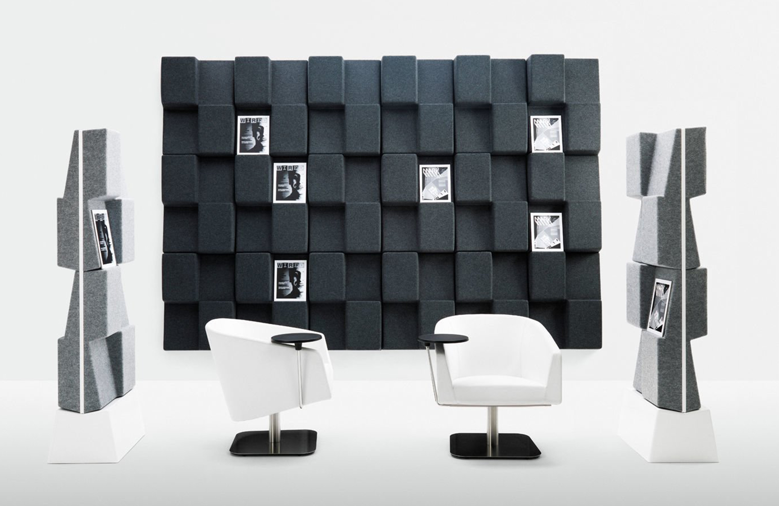 窗口是一个杂志展示架,充当吸音器,或充当杂志展示架的吸声器。由于采用模块化设计,Window可根据所需尺寸进行定制。窗户包括模制毛毡,内部带有吸音再生纤维板。使用隐藏式墙壁支架安装在墙上。提供2x2或3x3模块。