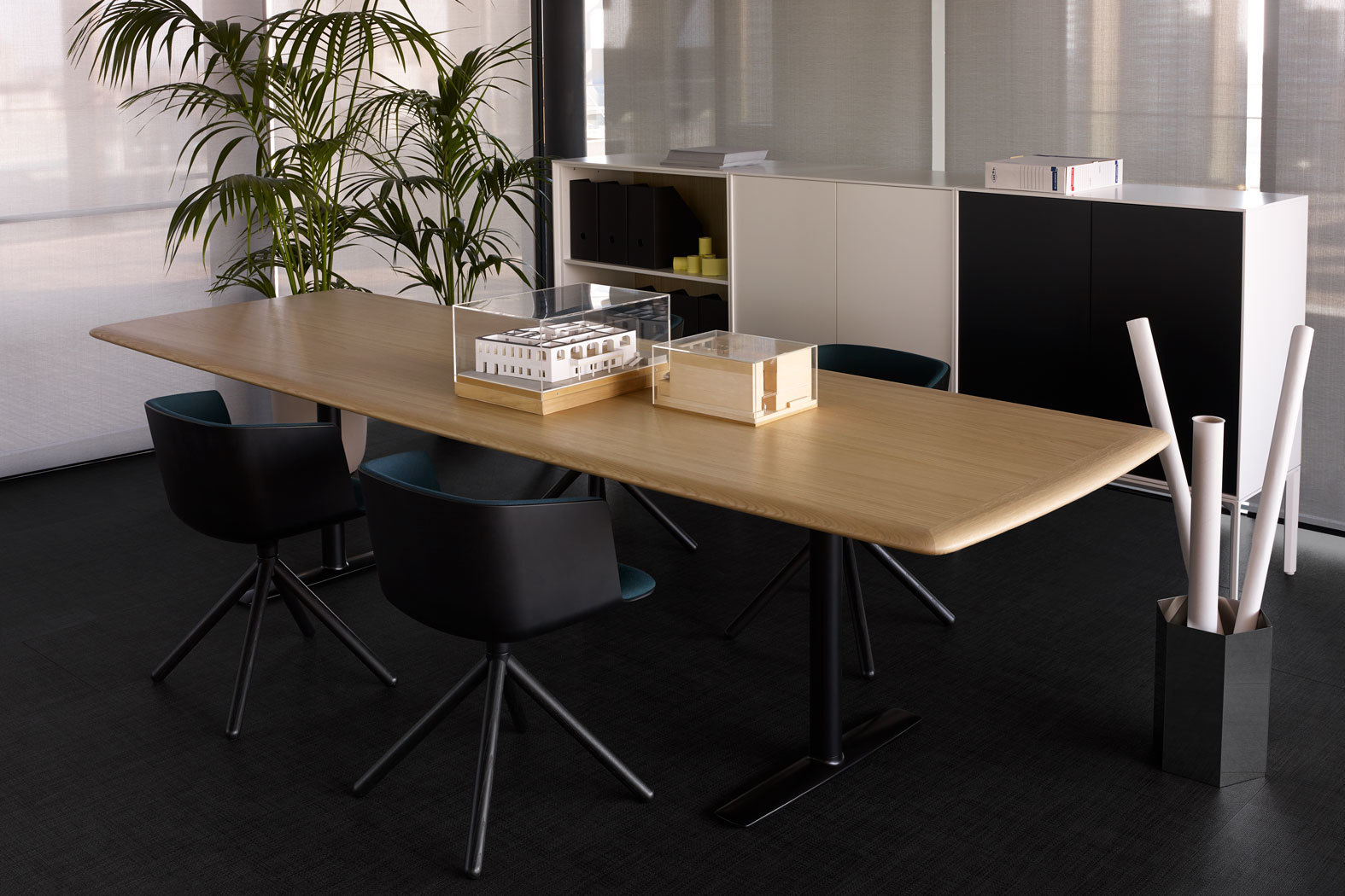 它的强大特性来自于一件作品的融合,经过四十年的经验和研究获得的专业知识。不同尺寸和可调高度的表格,作为单个元素创建或作为一个单元连续使用,以适应所有的上下文,依赖于这个高度重要的耦合元素。该表装有电连接点,顶部凹槽,以及无线充电点,以满足当代工作环境的需要。