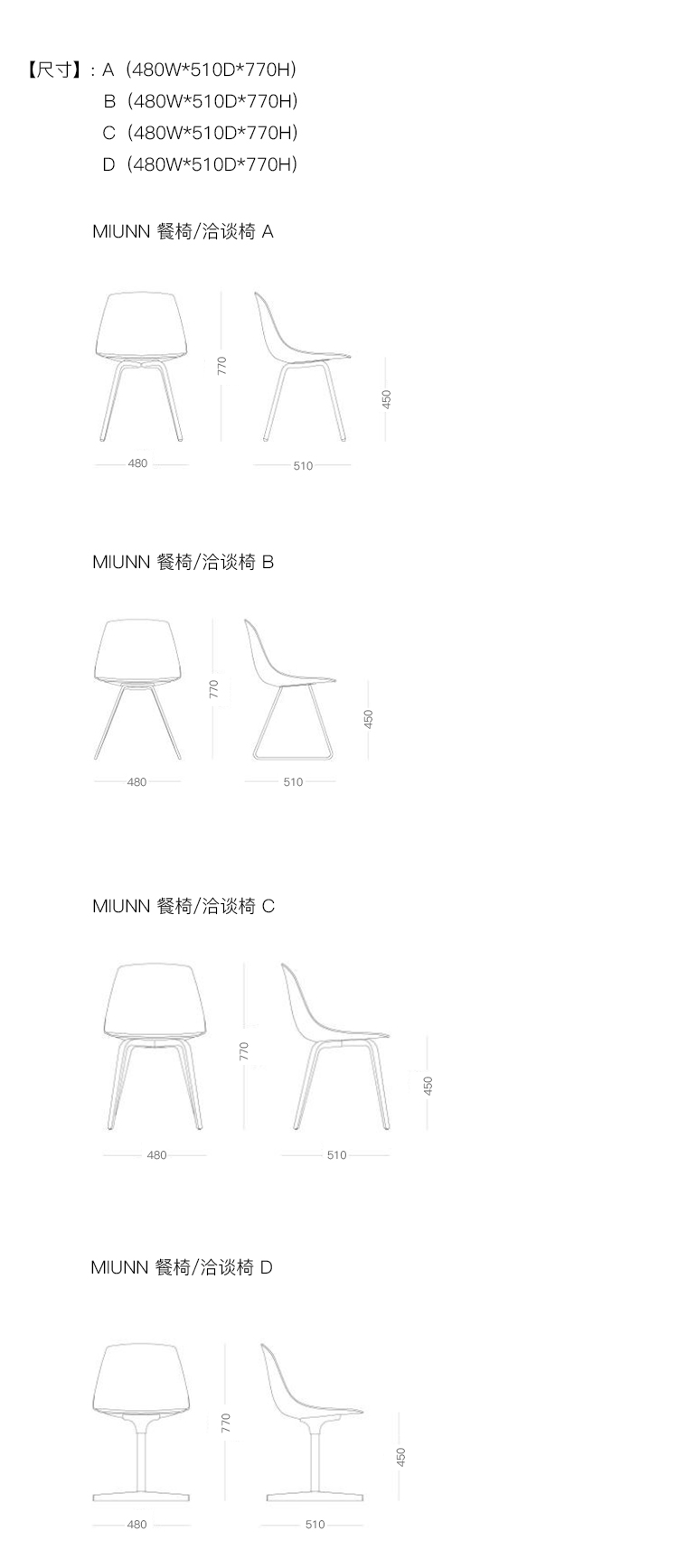MIUNN 餐椅/洽谈椅 系列尺寸/示意图