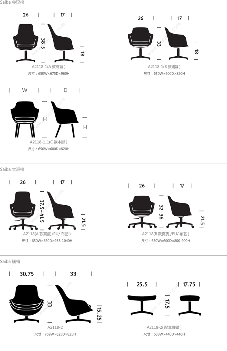 Saiba 会议椅 系列尺寸/示意图