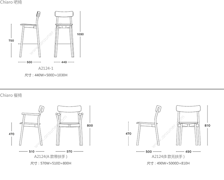 Chiaro 吧椅 系列尺寸/示意图