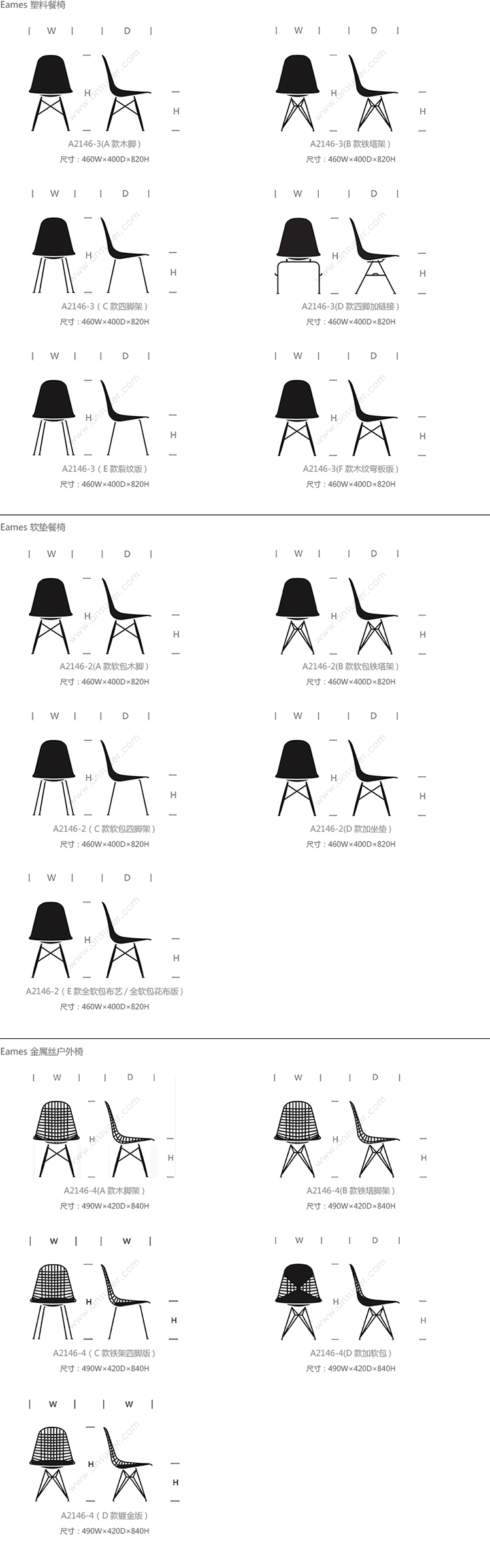 Eames® 系列尺寸/示意图