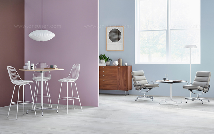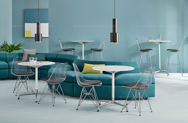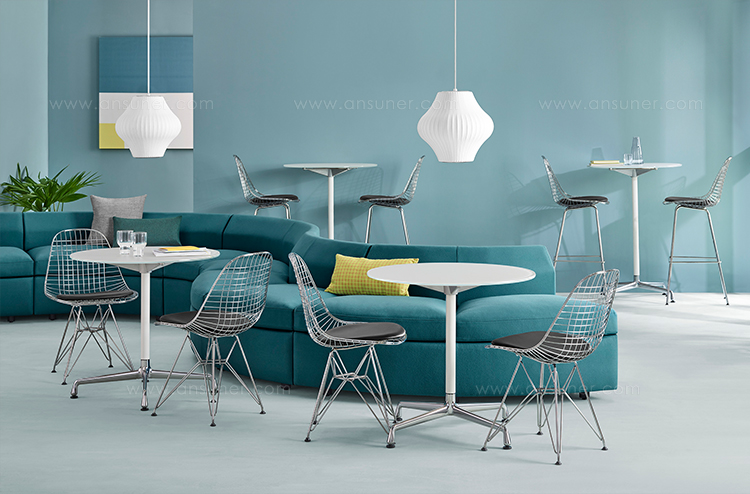 Charles & Ray Eames 1951 年發表的 Wire Chair 系列,以一片式有機網狀椅座,延伸變化出一系列不同椅腳及座墊搭配的單椅,這系列椅款輕巧透明的設計,在 60 年代可說是運用了當時最先進的技術來製作,靈感則是來自於鏤空的金屬收納籃,金屬條交織的椅座,彎曲的弧面不僅符合人體工學,在視覺上更具有穿透性。