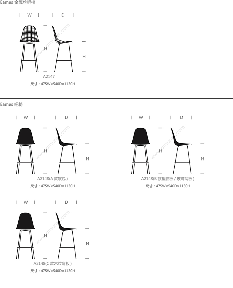 - 坐具|吧椅/凳子|办公家具|设计师家具|伊姆斯金属丝吧椅