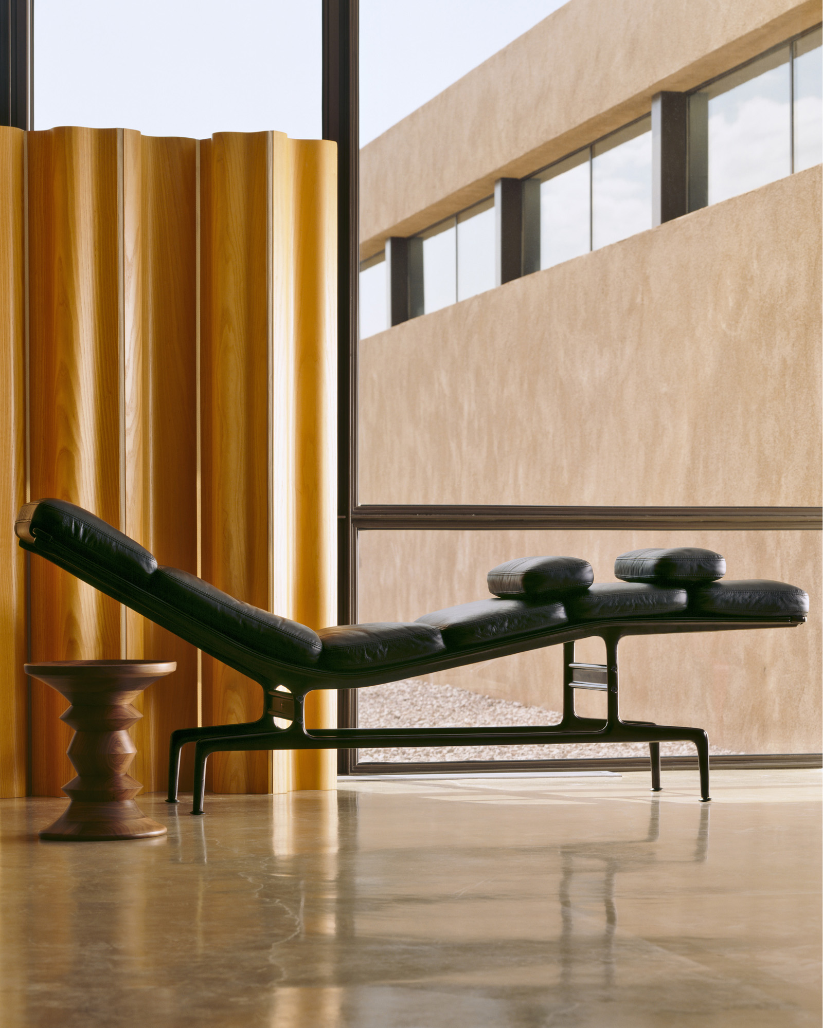 Eames躺椅柔软、舒适,且只有45.72厘米宽。躺在上面时,您会自然地将双臂折叠在胸前。如果您打瞌睡了,双臂则会立刻垂落在身体两侧,从而唤醒自己。这是一个供暂时小憩的美丽场所,可放在书房里、私室中或者行政办公室中。