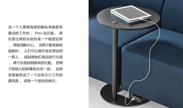 Plex将居住环境的舒适性引入到工作场所。俱乐部的椅子和沙发大小适合各种形状和身材的人。椅子的背部是雕刻的,人们可以根据手头的任务改变自己的姿势,从交谈到处理邮件。