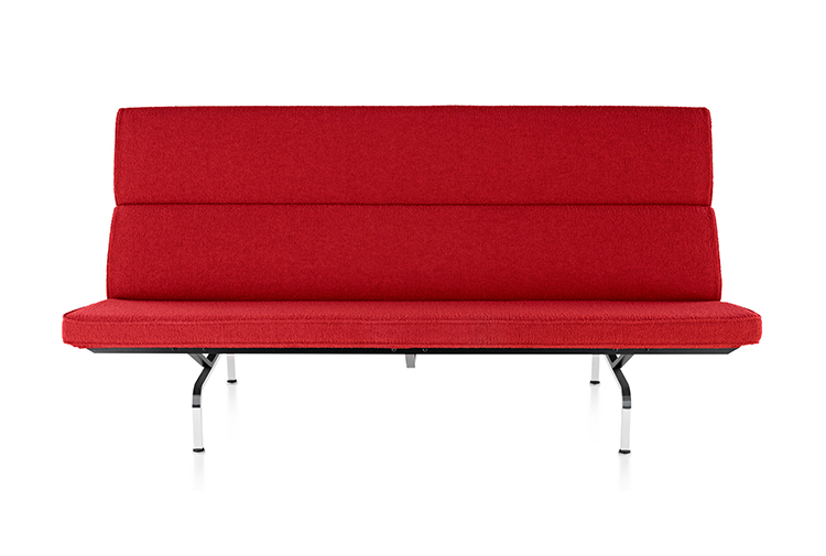 Eames紧凑型沙发既有传统笨重沙发的所有舒适性,又能轻松布置在无法使用大沙发的狭小空间内。以放在家庭的前厅、书房、工艺间或缝纫室,或是家庭办公室。可以放在行政套房、休息室和接待区。可以布置在小公寓中的起居室内,这款沙发可以提供足够的就坐位置,而且不会破坏房间比例搭配。