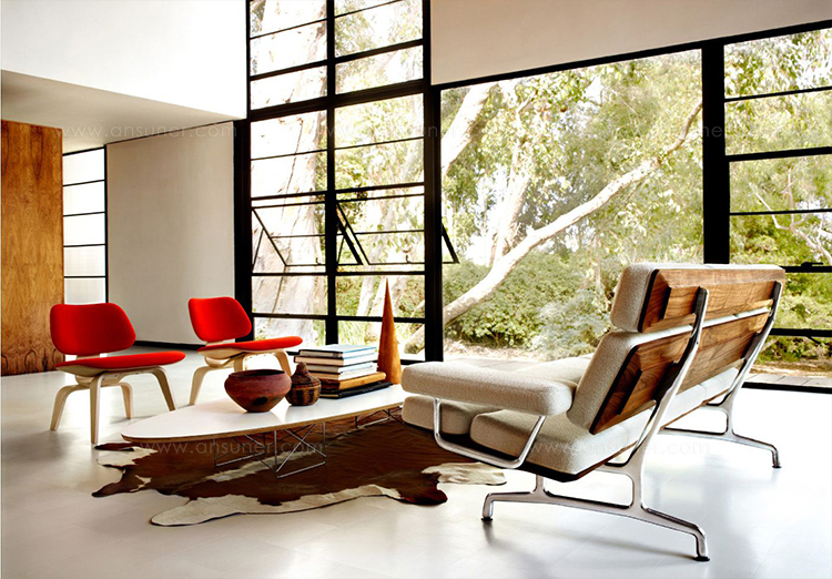 Eames沙发注重使用漂亮的材料和简约外形,完美诠释现代家具设计。倾斜轮廓和简洁表面体现出华丽核桃木或柚木、柔软皮革和抛光铝的和谐组合。现代家庭或办公室皆宜,是舒适地仰坐和放松的奢华选择。