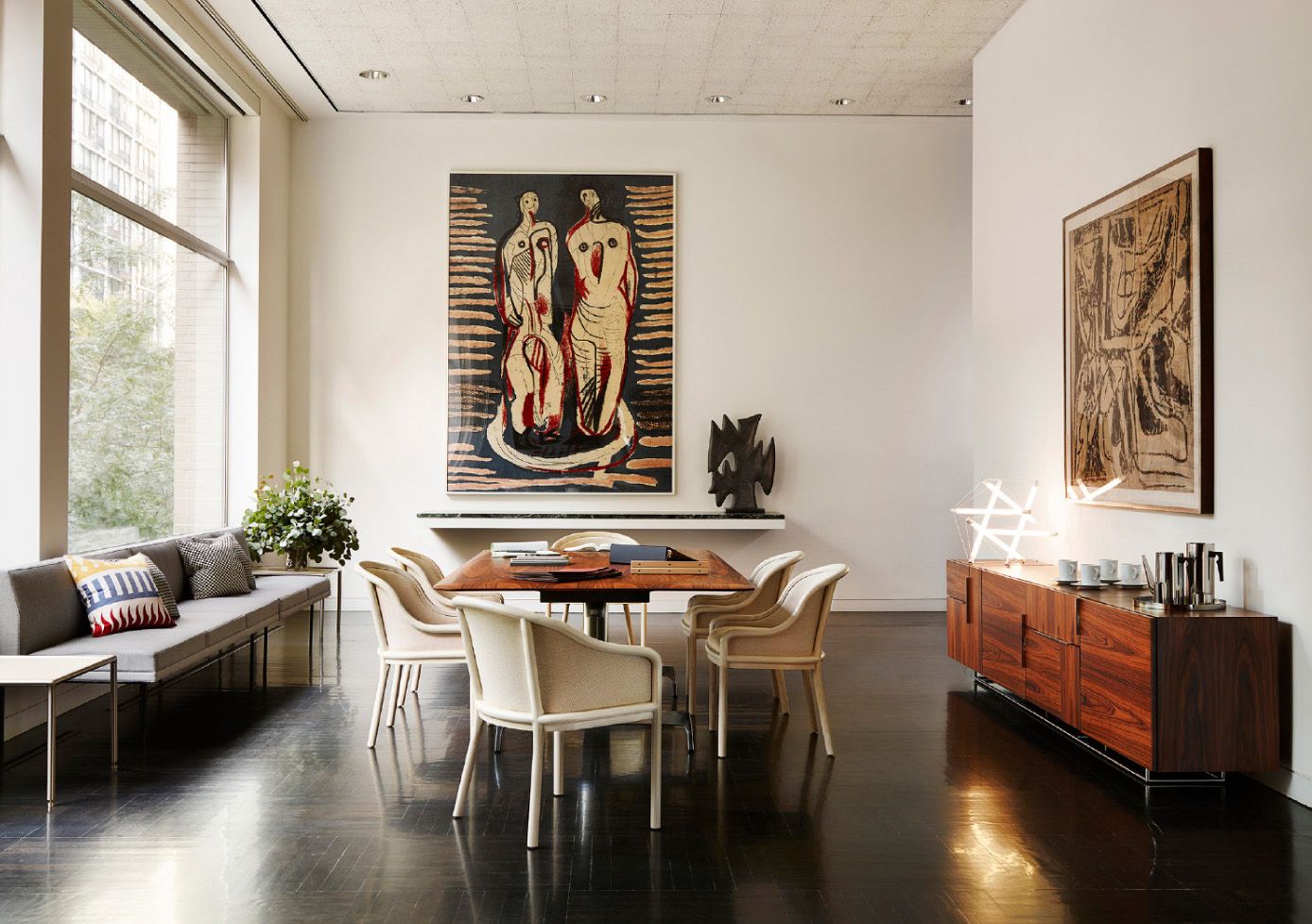 Tuxedo Lounge Seating设置在各种金属饰面的窄钢腿上,由于背部和(可选)臂形成的水平带,切割出低而光滑的外形。精心设计的室内装潢覆盖了纤薄的双密度泡沫垫,进一步增强了设计的轻巧外观。每件都有各种各样的室内装潢,有或没有绗缝。
