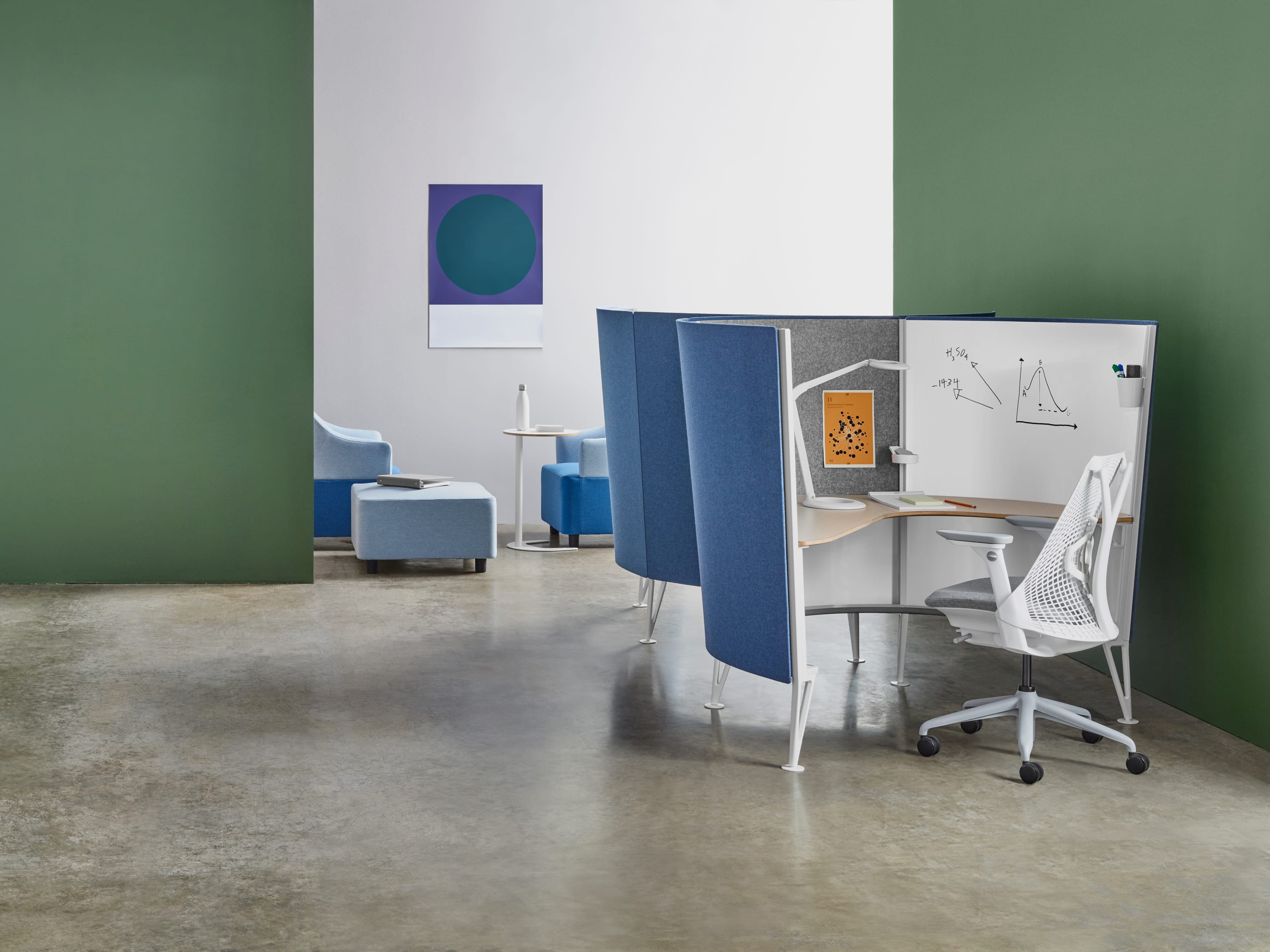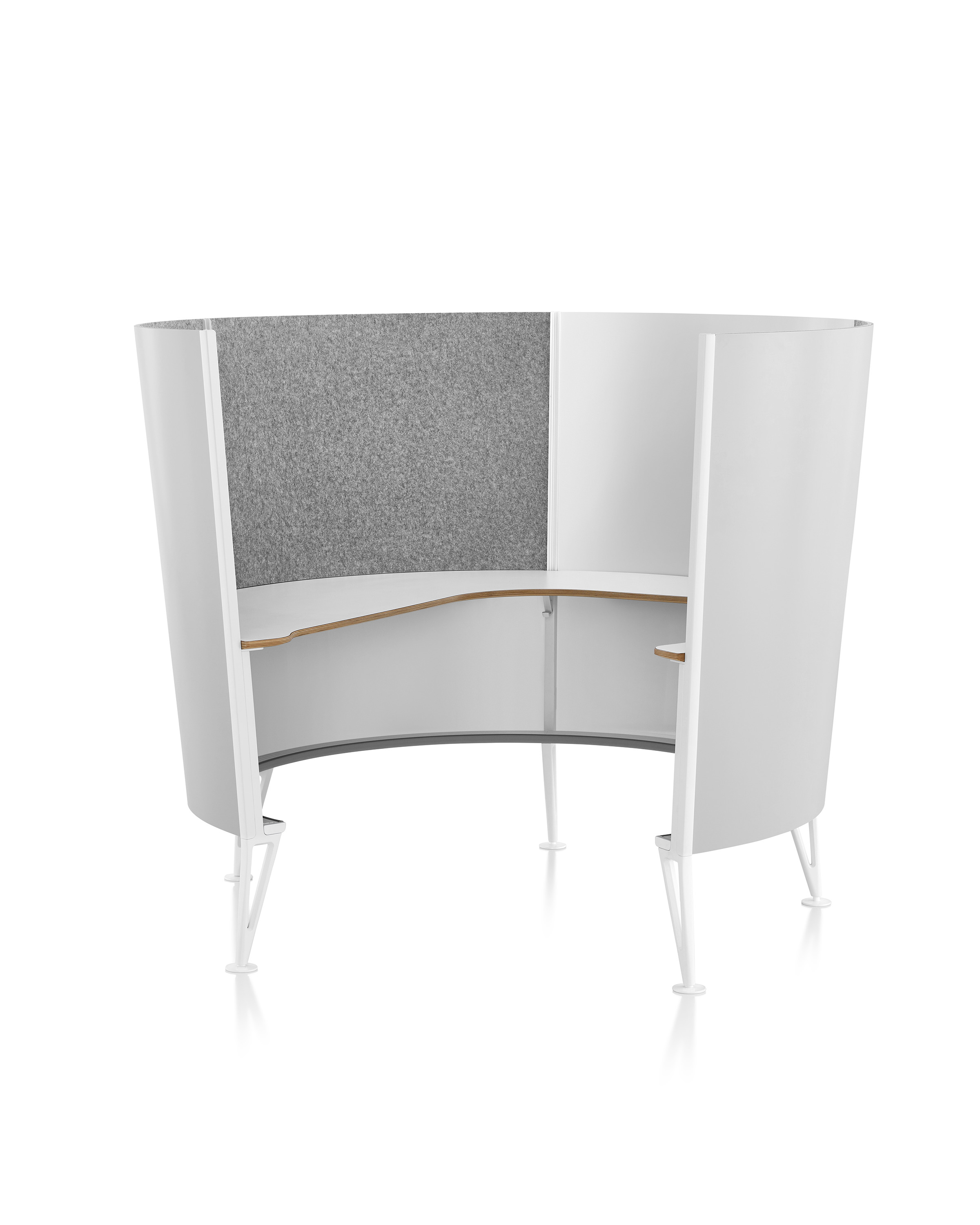 To bring their best thinking to their teams, people need time for focused work and contemplation. Prospect Solo Spaces are ideal for individual creative work or simply a place to settle in and tackle a few quick tasks. The round shape offers visual privacy—unique within an open floorplan—and the soft, sound-absorbing materials create a peaceful spot for working or studying.