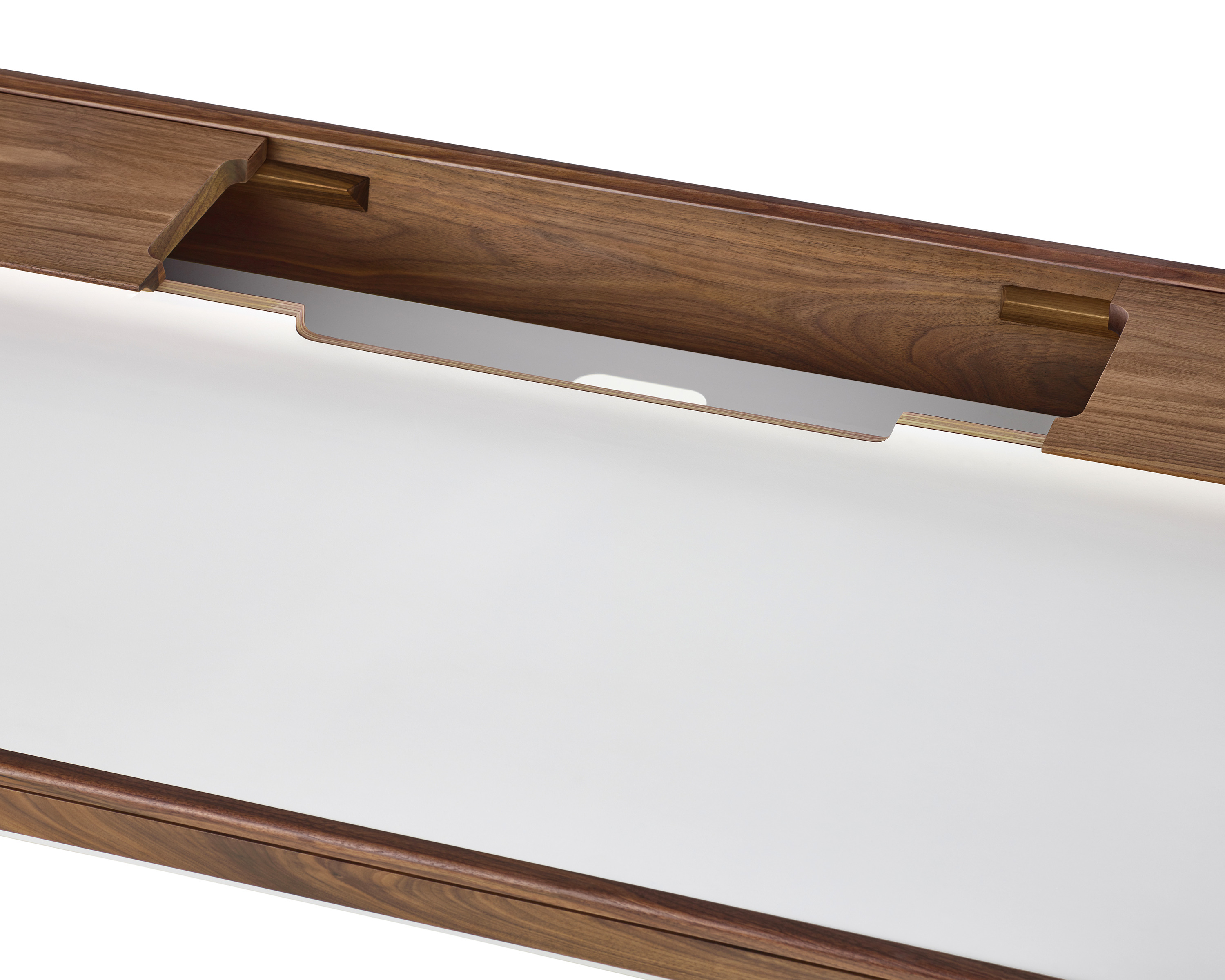 从优雅的木材和铝材组合到精心制作的细节,如软木衬里抽屉,Airia将美观与功能完美结合。 设计师Ayako Takase和Cutter Hutton的动机是设计一个“智能桌面,承认技术和我们在工作时积累的东西,但是以微妙,集成和直观的方式进行。”