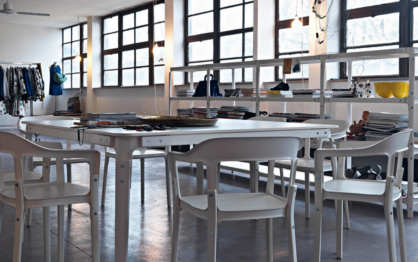 如果你对这张可爱的、持久的桌子实在是爱不释手,那么也许是时候添加一些东西了。矩形钢木桌系统和扩展可在相同的完成与原来,并提供额外的空间会议和餐饮。