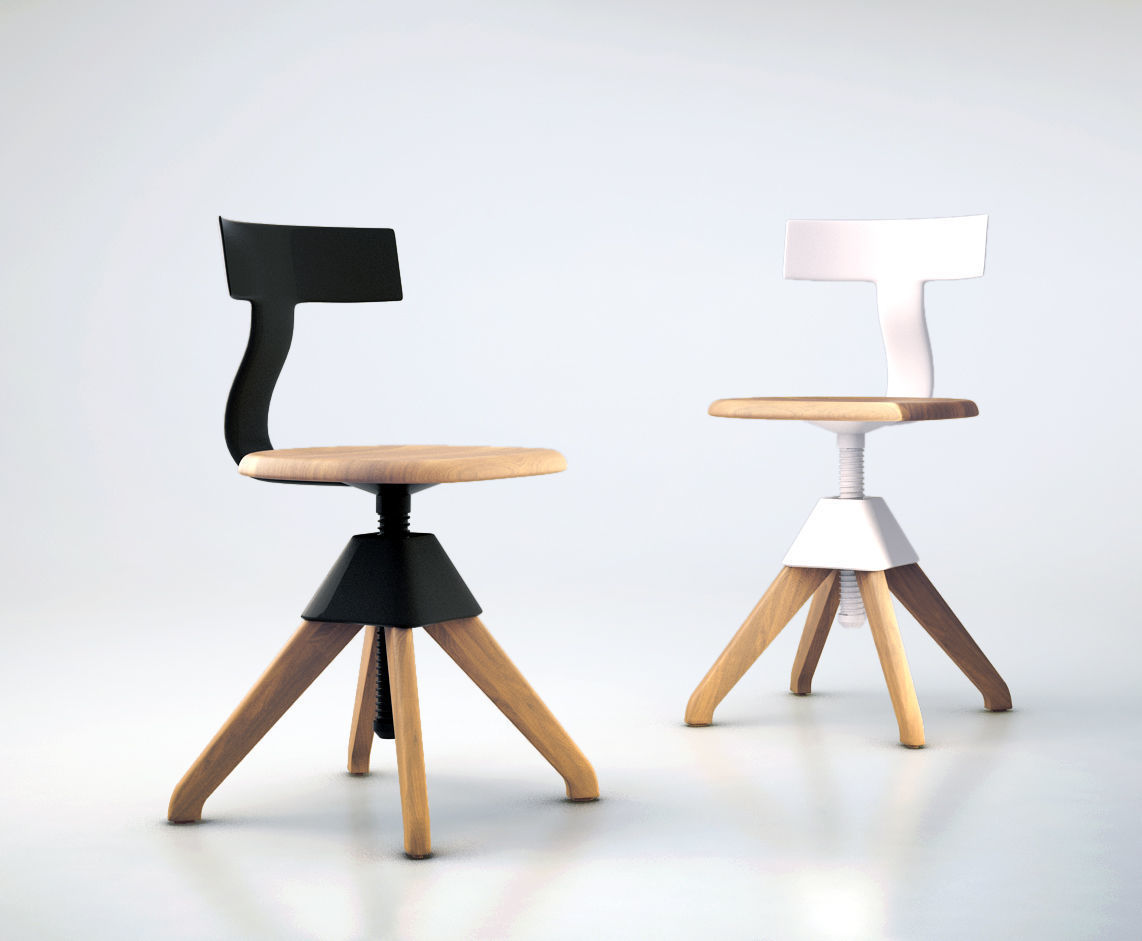 Tuffy是一张旋转椅,高度可调。座椅和框架是天然或油漆的实心山毛榉木材。在聚丙烯中加入玻璃纤维后,连接和螺钉。伴随着毛毡垫。凳子或桌子的版本也可以。