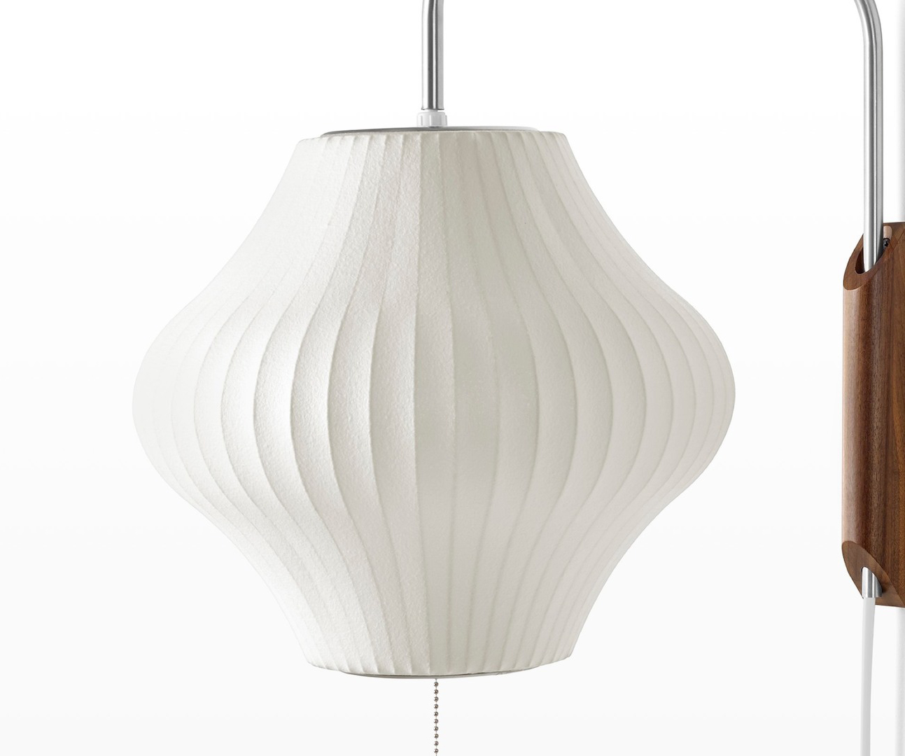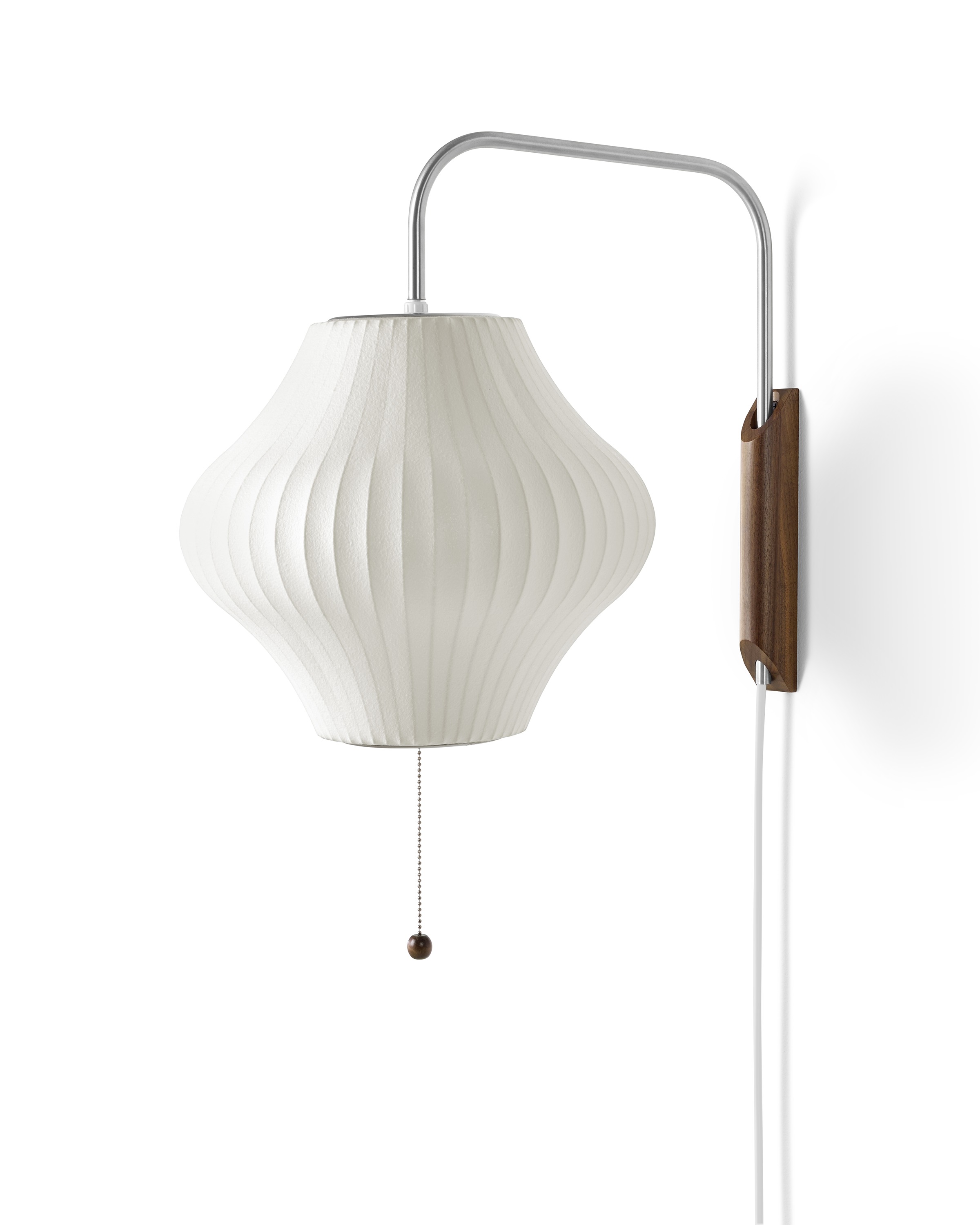 Nelson Pear Wall Sconce采用2英寸厚的实心胡桃木壁挂式支架,伸出的钢臂和12英尺的插入式电源线。 手臂上的旋转铰链可以轻松调节高度。 Nelson Bubble Lamps最初设计于1952年,当时乔治·尼尔森(George Nelson)的灵感来自于一套瑞典吊灯,这些吊灯采用丝绸覆盖物进行繁琐的制作。 然而,更大的挑战是价格昂贵。 尼尔森决定制作自己的套装,并采用创新工艺,用半透明塑料材料取代丝绸色调。