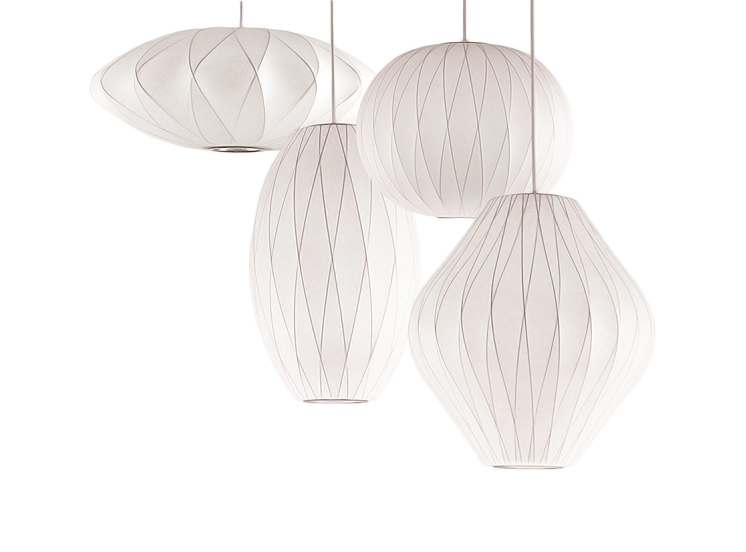 Nelson气泡灯造型多变,别具一格,其各种球状外形能为任何类型的室内设计增添一丝趣味。Nelson Ball Crisscross Bubble Pendant球形十字气泡吊灯浑圆的灯罩与其下层结构中对分的图案组合成一个非常有意思的轮廓。1952年,Nelson看到一组配有精心制作的丝质灯罩的瑞典吊灯,由此触发了自己的灵感。然而,吊灯的价格实在让人望而却步。Nelson决定设计制作自己的灯组,并且想出了用透明塑材代替真丝的创新工艺,使其能拥有更实惠的价格。
