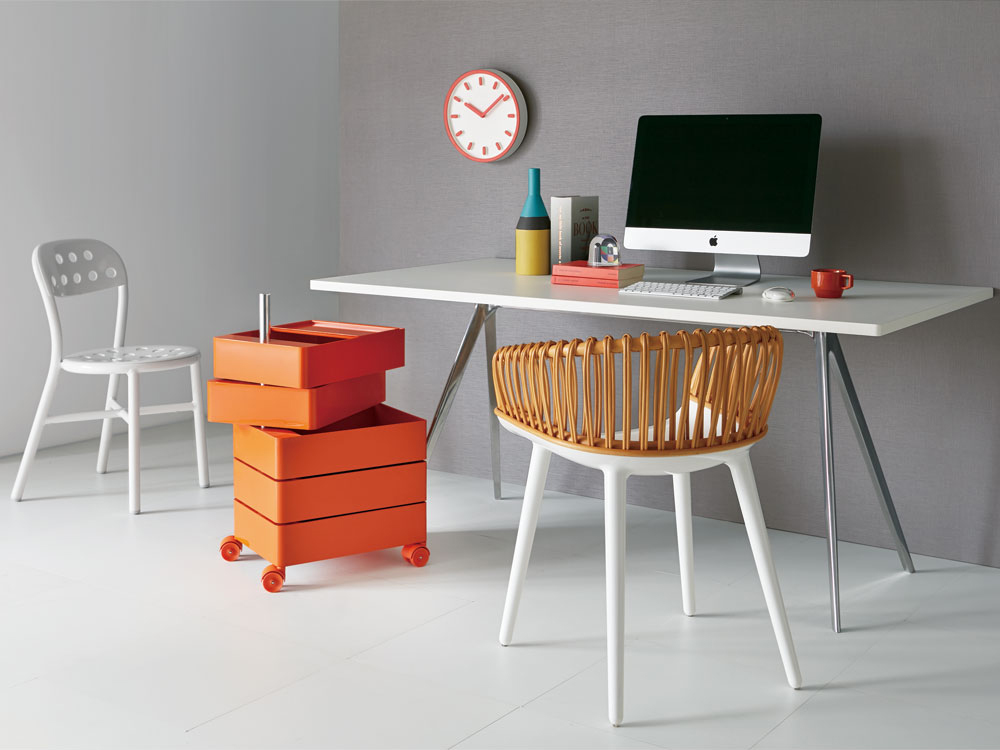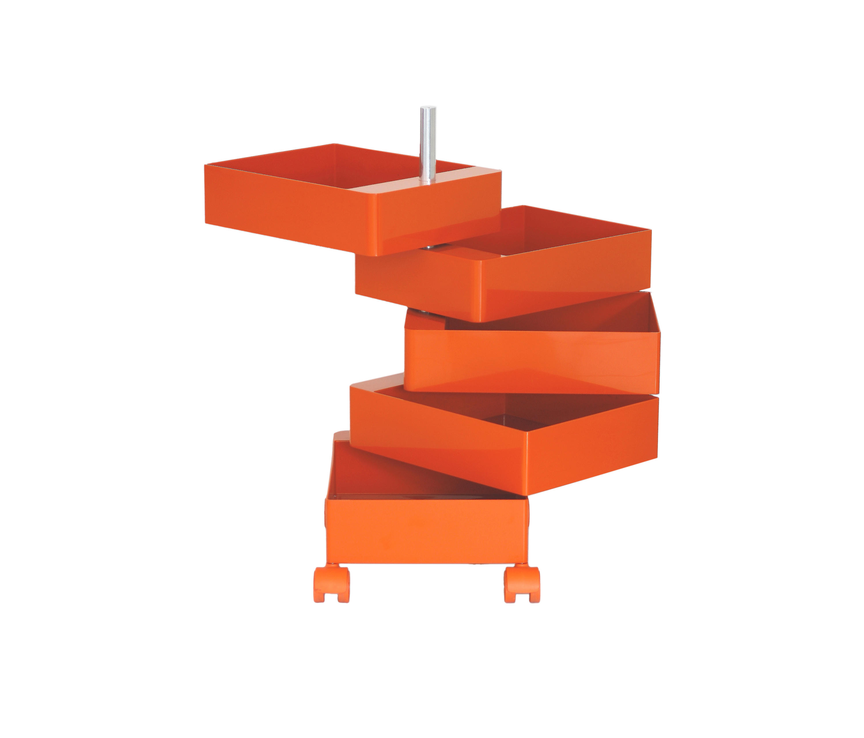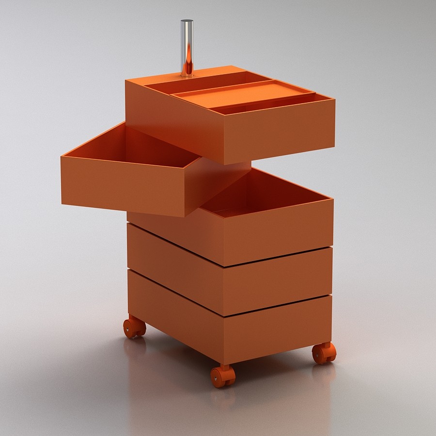 设计师康士坦丁.葛切奇以逻辑设计著称。他的360°集装箱设计是一个完美的例子,它解决了如何保持抽屉的所有内容可访问的问题。它的铝杆作为一个枢轴点,允许每个抽屉独立旋转,以便您可以访问其全部内容或隐藏起来轻松。由光滑的ABS塑料制成,可用橙色、白色和黑色。