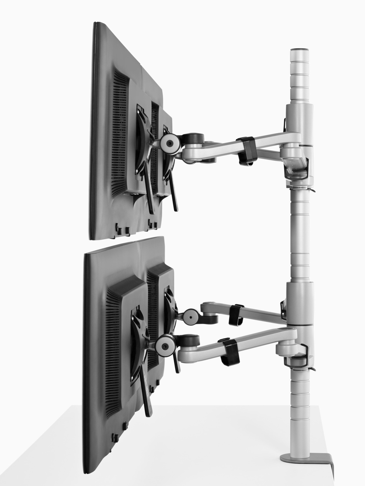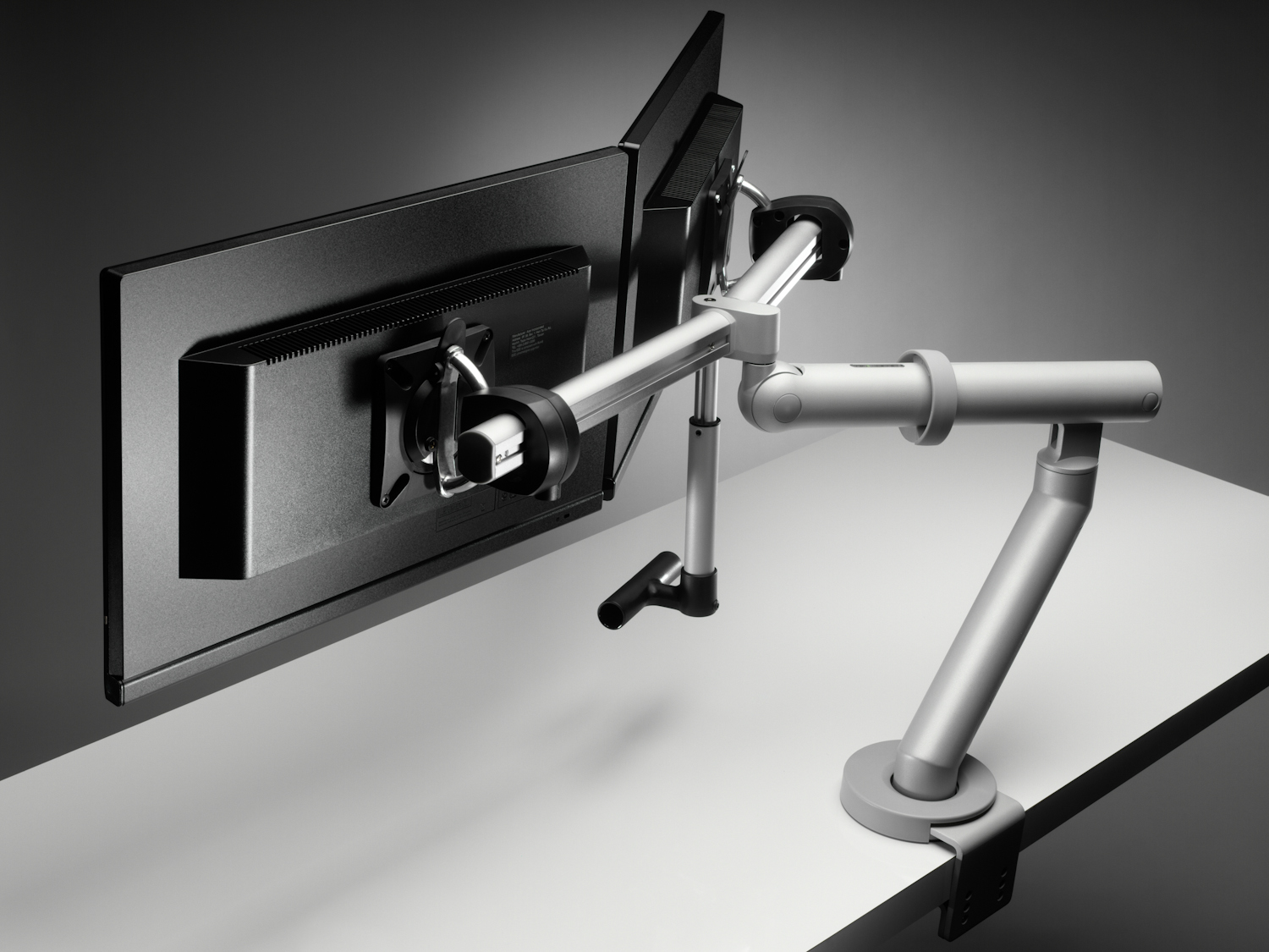 Daisyone多显示器臂非常适合具有轻质屏幕的高密度环境。 当您准备好重新配置时,快速释放控制使安装和移除变得快速而简单。